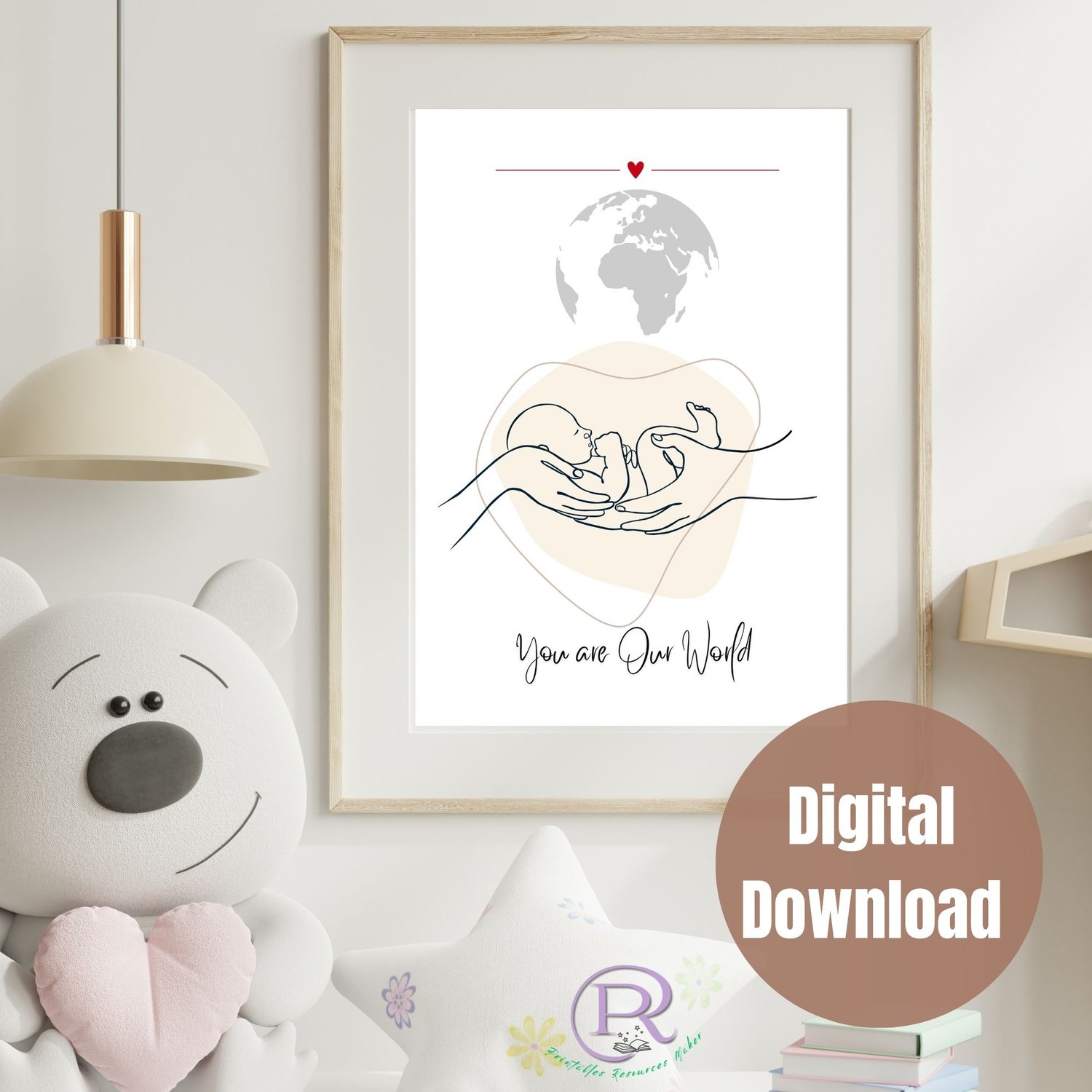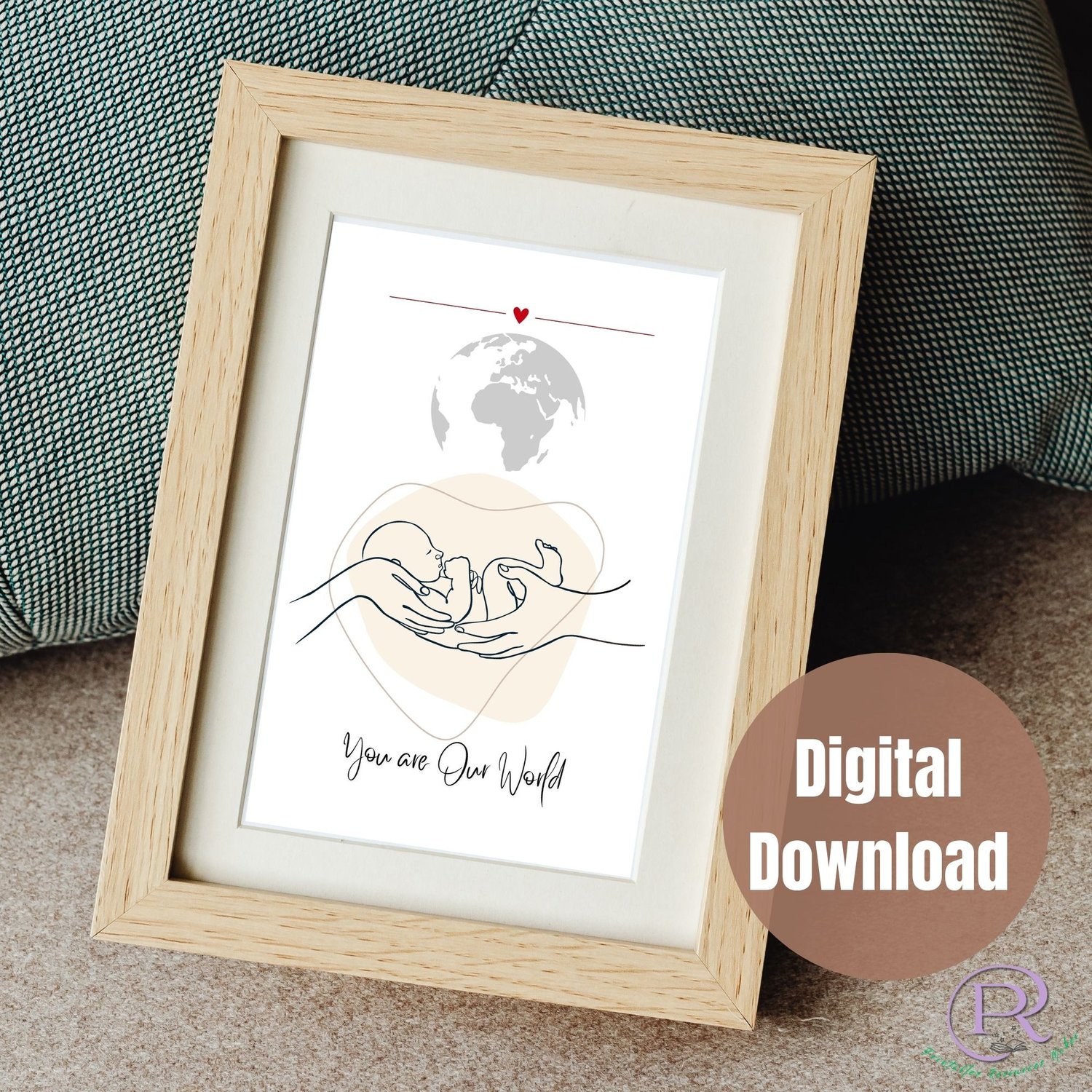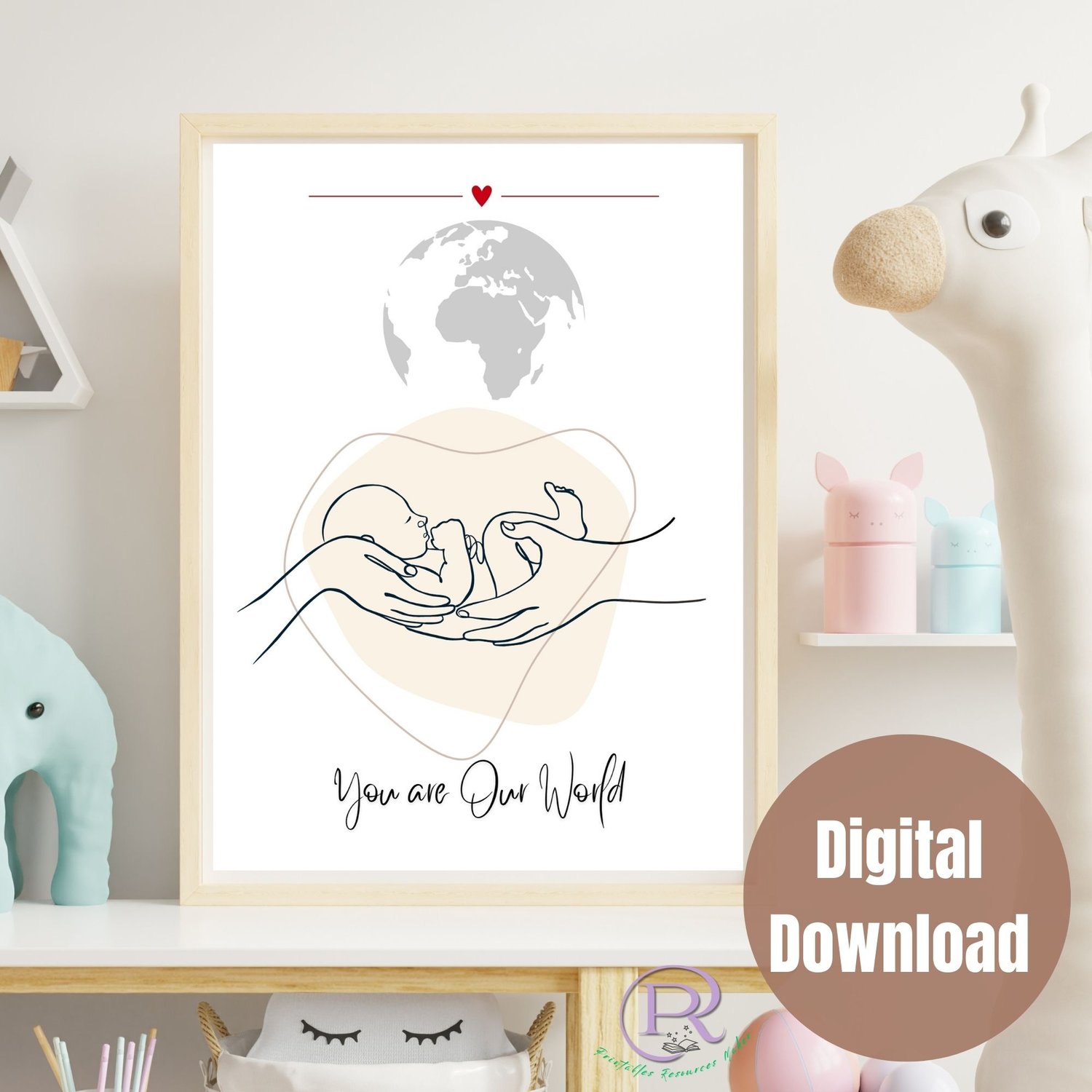 Printable Wall Art, Birth Drawing, Minimalistic Artwork, Digital Download, Neutral Baby Art, Kids Rooms Decor, Newborn Gifts, Baby Line Art