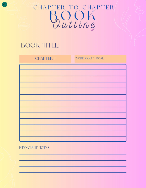 This simplified template will make it easy for you to plan out each chapter of your next masterpiece. With colorful pages and room to jot down notes for each chapter - up to 30 chapters - your book will be outlined in no time!