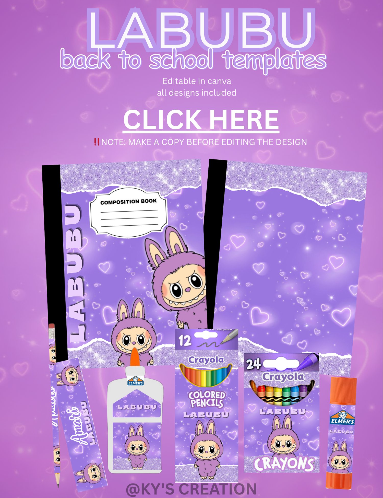 **Violet Labubu Back to School Printable Template Set | Digital Download**