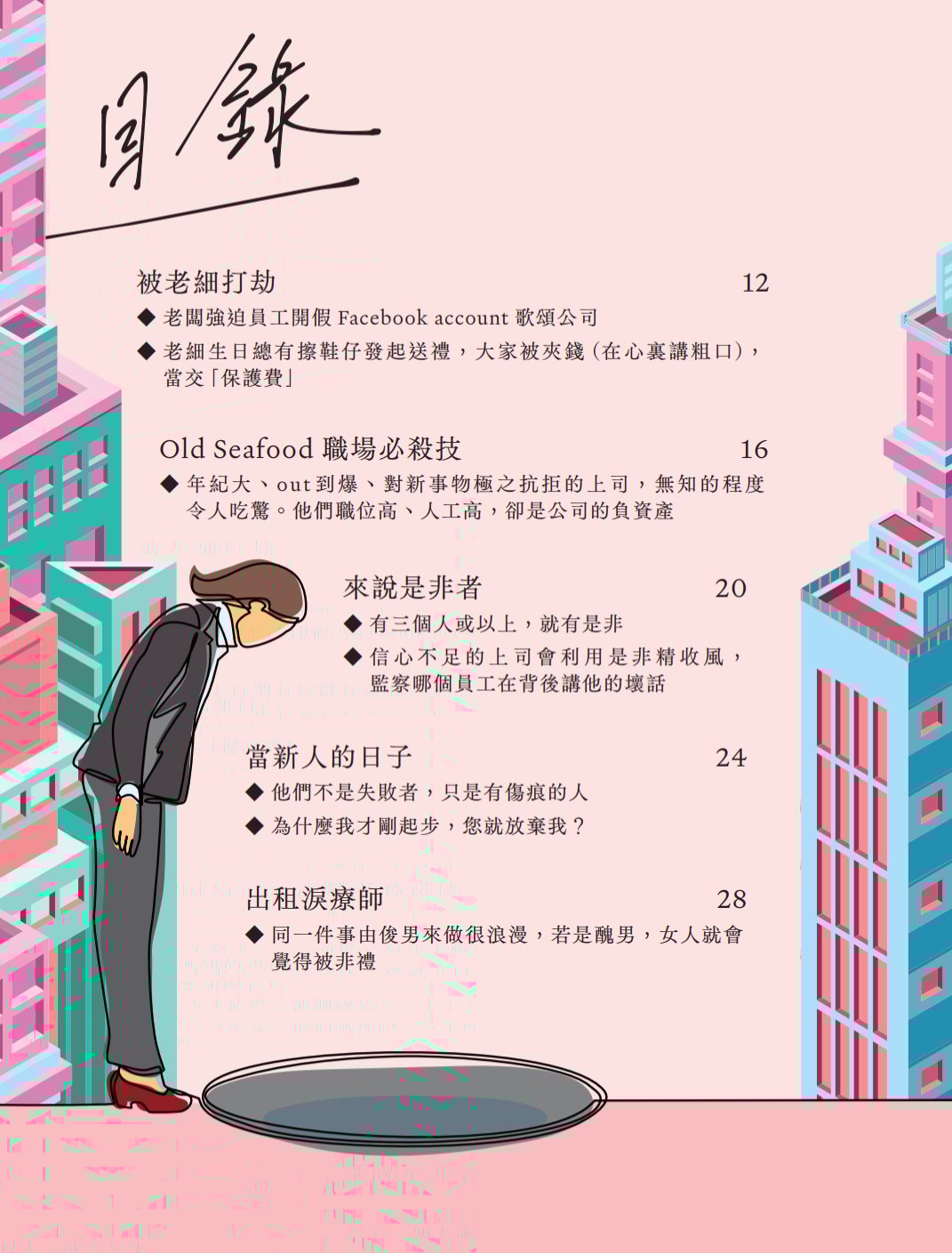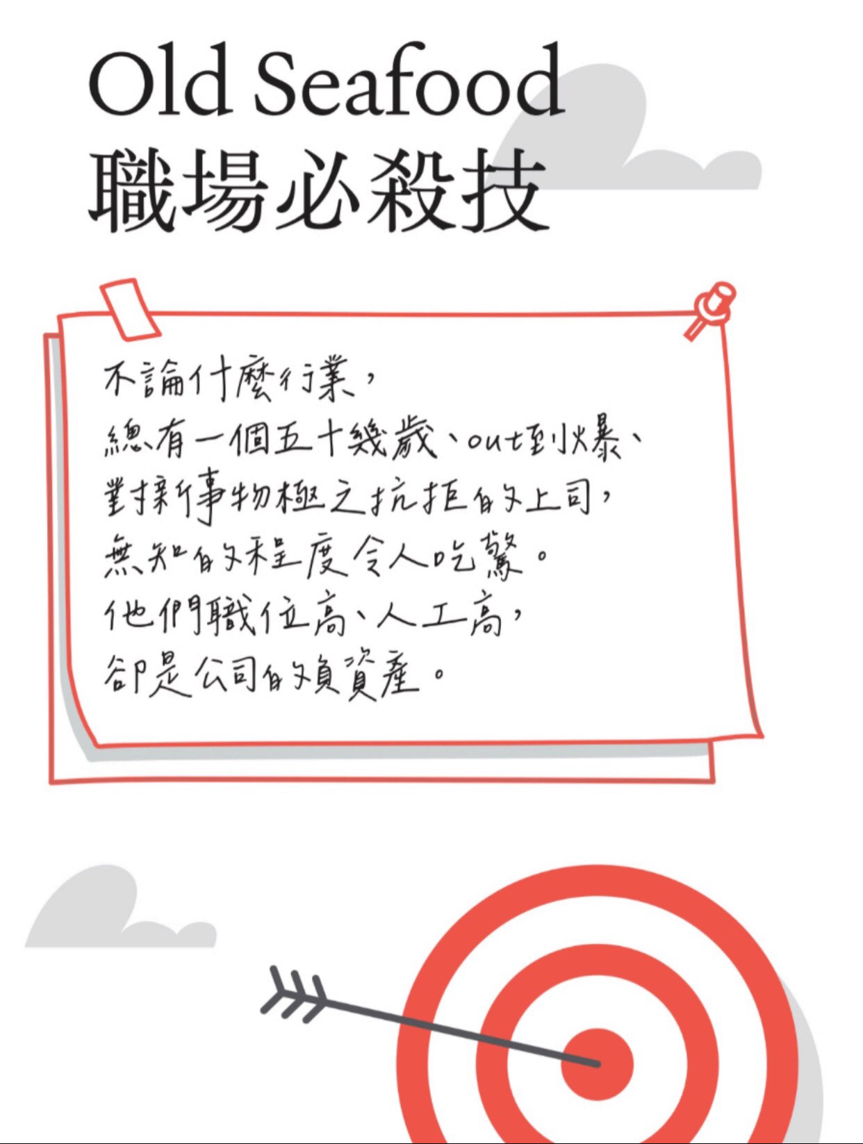 - 職場Old Seafood:年紀大、out到爆、對新事物極之抗拒的上司,無知到令人吃驚。他們職位高、人工高,卻是公司的負資產