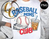 Show off your game day pride with this fun and trendy Baseball Moms Club PNG! This design features bold, playful lettering paired with classic baseball elements, making it perfect for proud baseball moms cheering from the sidelines.