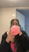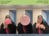 Stef taking on the balloon challenge. The BANG made her wince but it was good fun in the end!