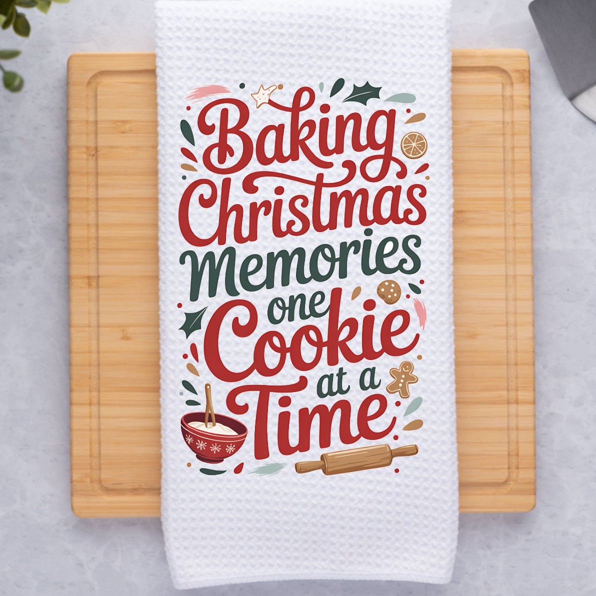 Baking Christmas Memories One Cookie At A Time Funny Sarcastic Kitchen Dish Towel
