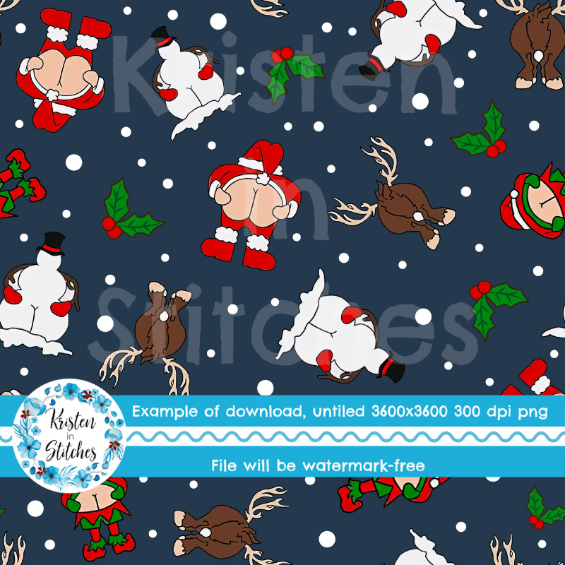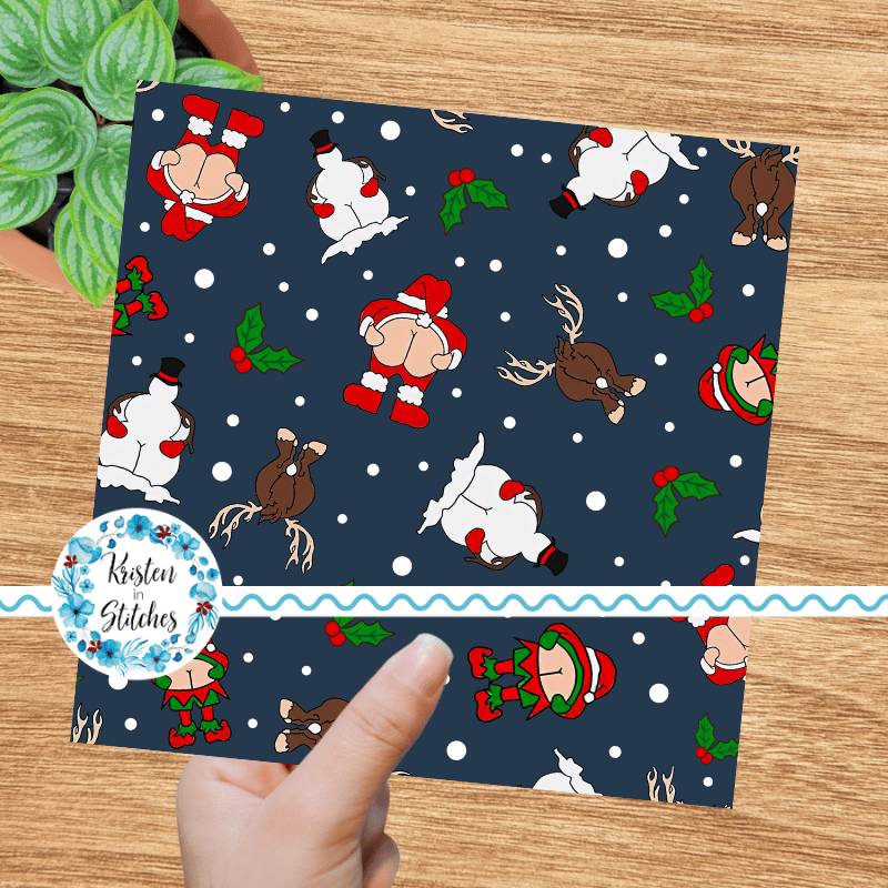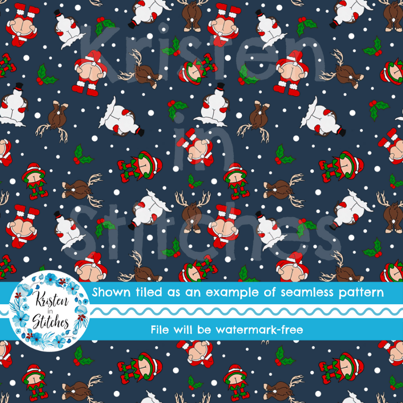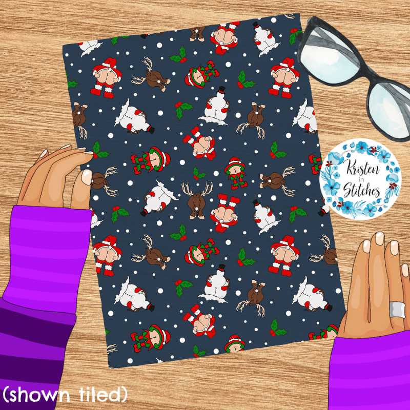 Cheeky Christmas Seamless Pattern, Kiss My Merry Ass, Navy
