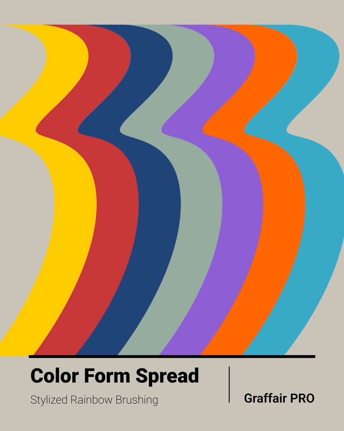 Color Form Spread: A digital graphic design image of a stylized rainbow colored brush spreading.