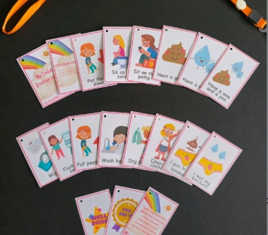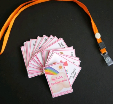 The "My Toilet routine Cards" are a visual aid that can help individuals with autism and speech delay learn how to use the toilet independently. The cards are designed to be used as cue cards, which can help individuals with autism and speech delay learn how to use the toilet independently. The cards are also suitable for special needs children and adults who have difficulty communicating verbally.