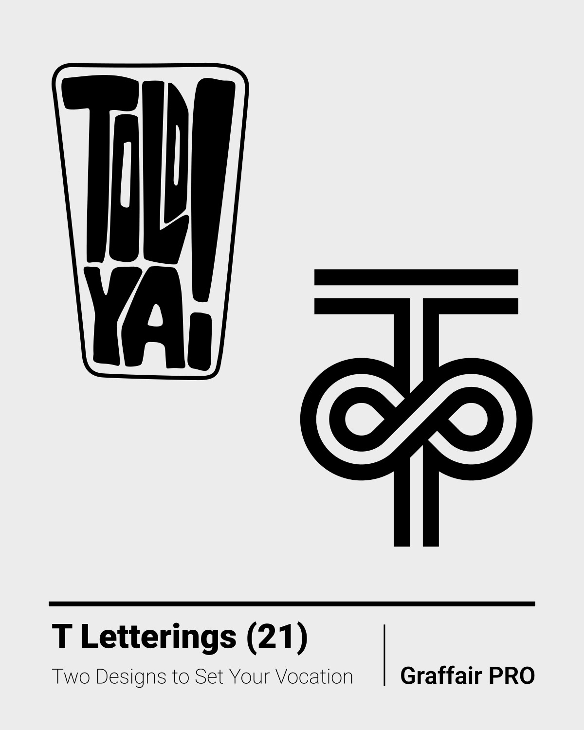 T Letterings (21): The 21st set of two original "T" logo lettering designs to edit and evolve your typography on your visual branding project. These letterings are part of the "800 SVG Letterings" bundle, which also contains 800 other exceptional designs.