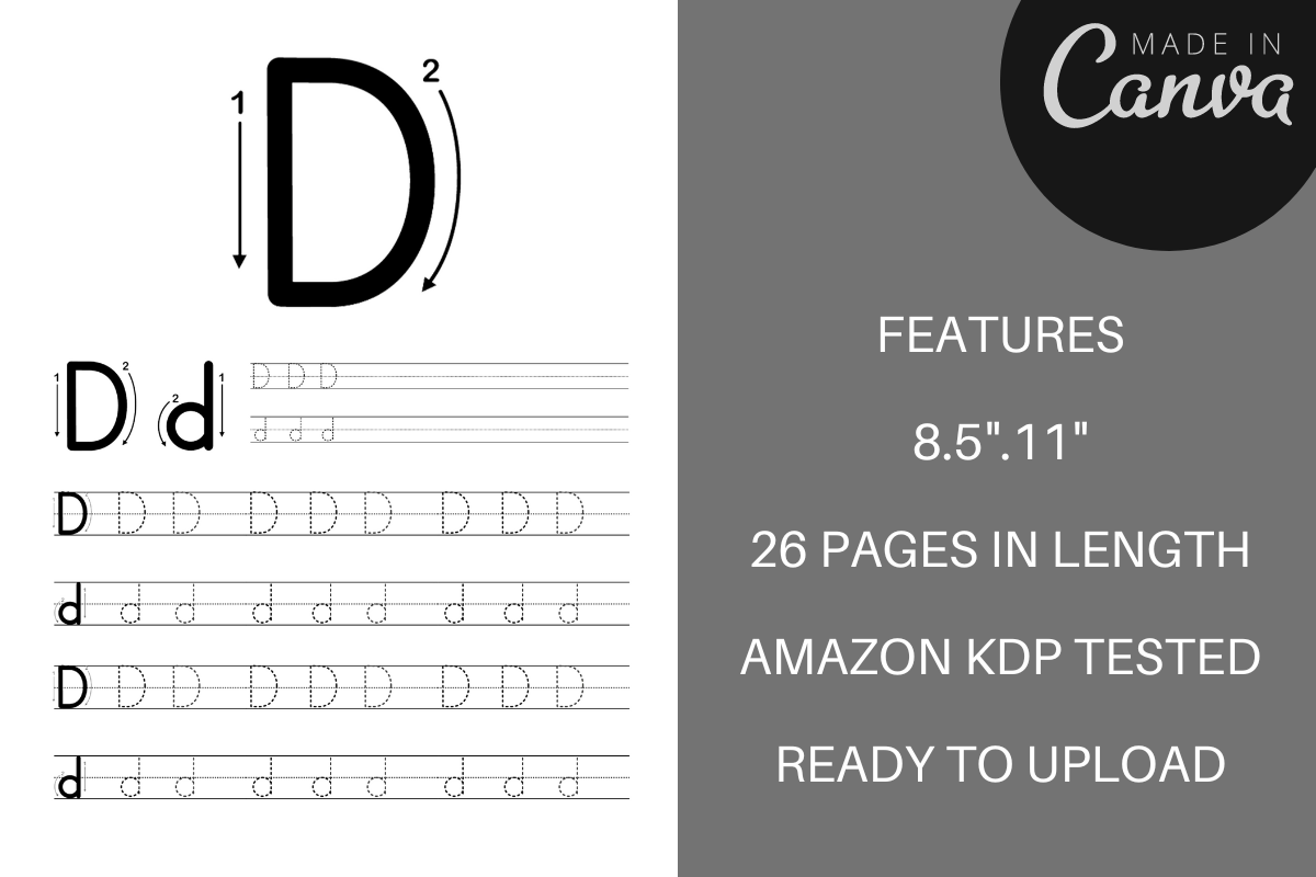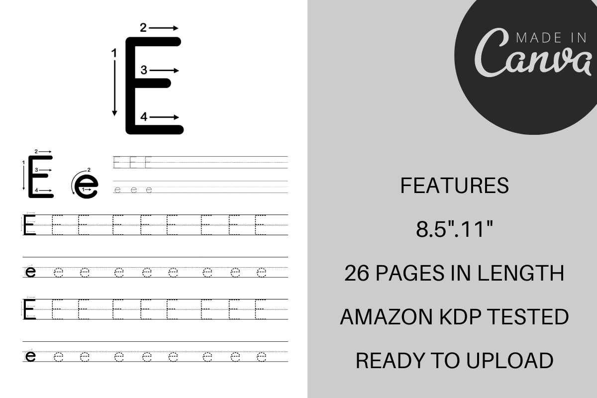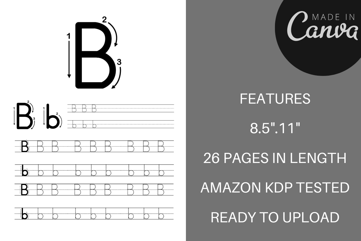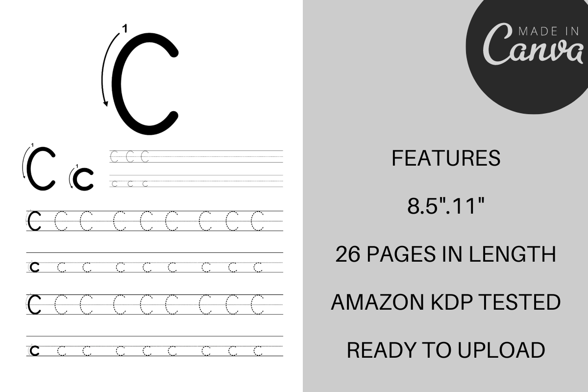 With this interior, you can quickly and easily create a high-quality, professional-looking alphabet drawing book for KDP.