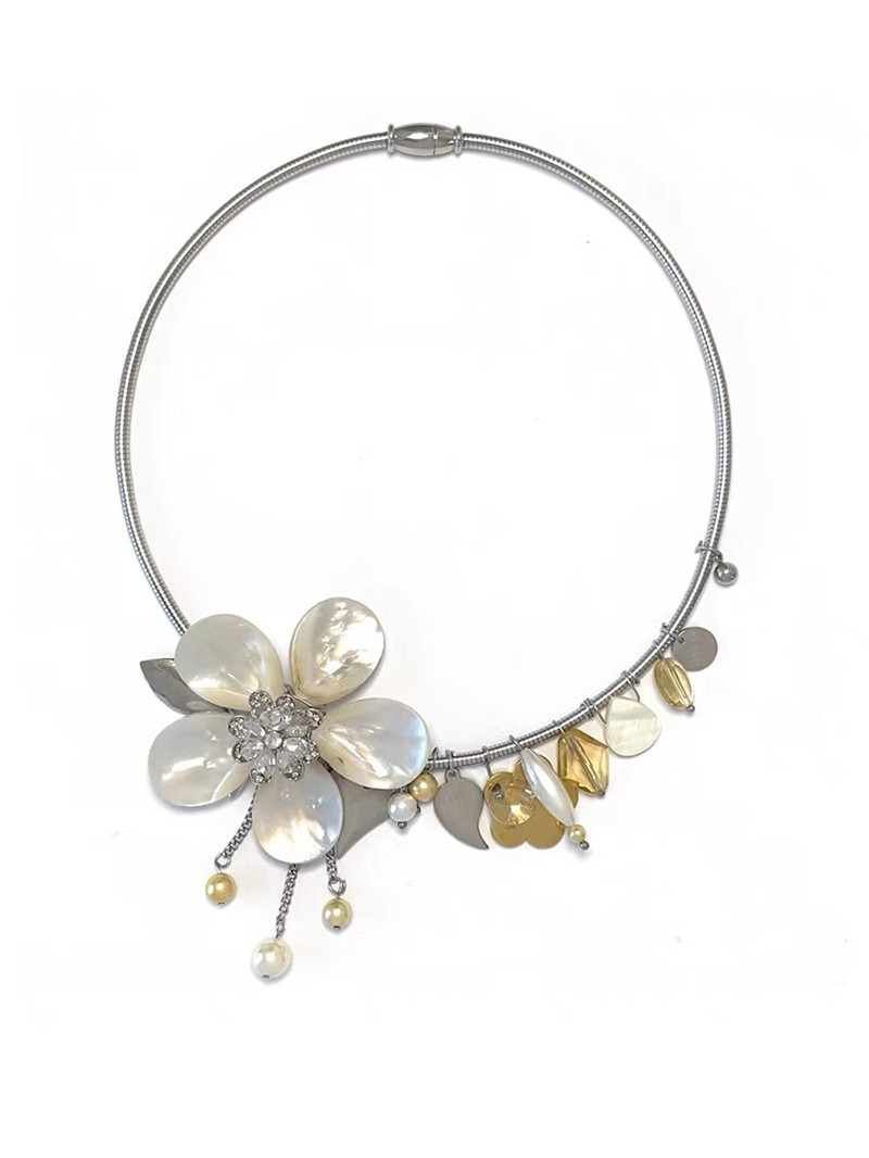 " Walking by the Sea" Designer retro elegant fashionable gold silver flower choker