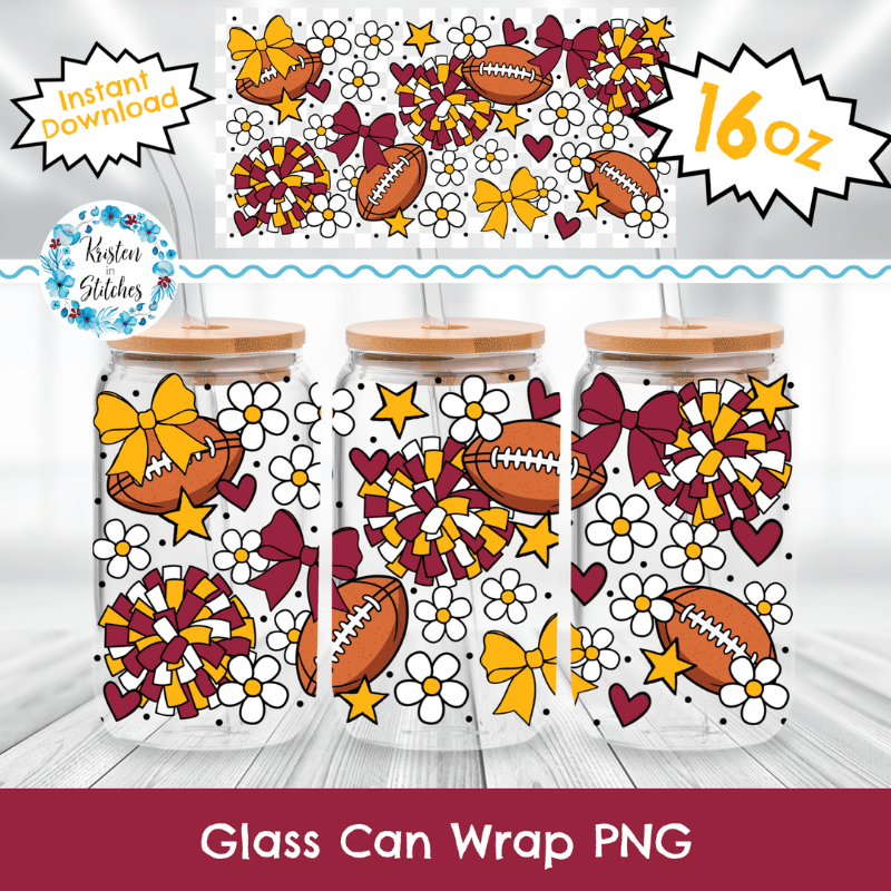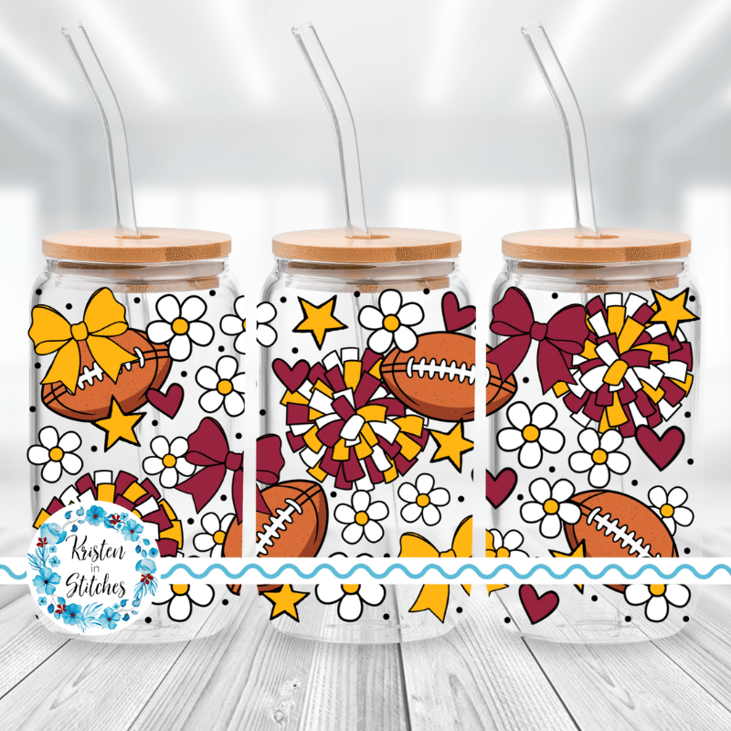 Football Team 16 oz Glass Can Wrap Transparent PNG, Arizona Cardinals Dark Red and Yellow Gold