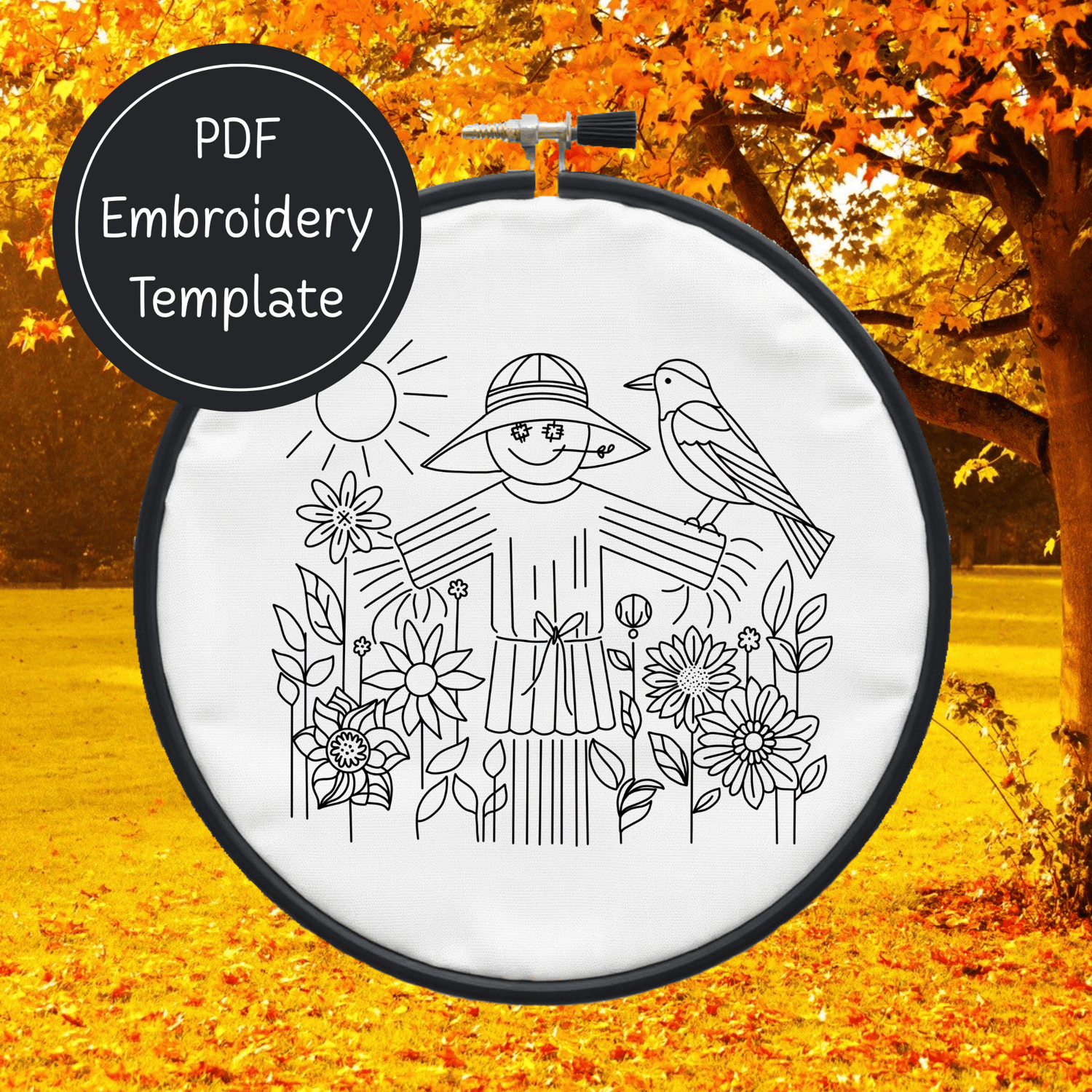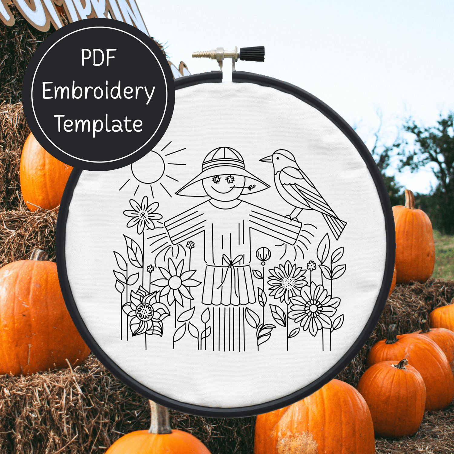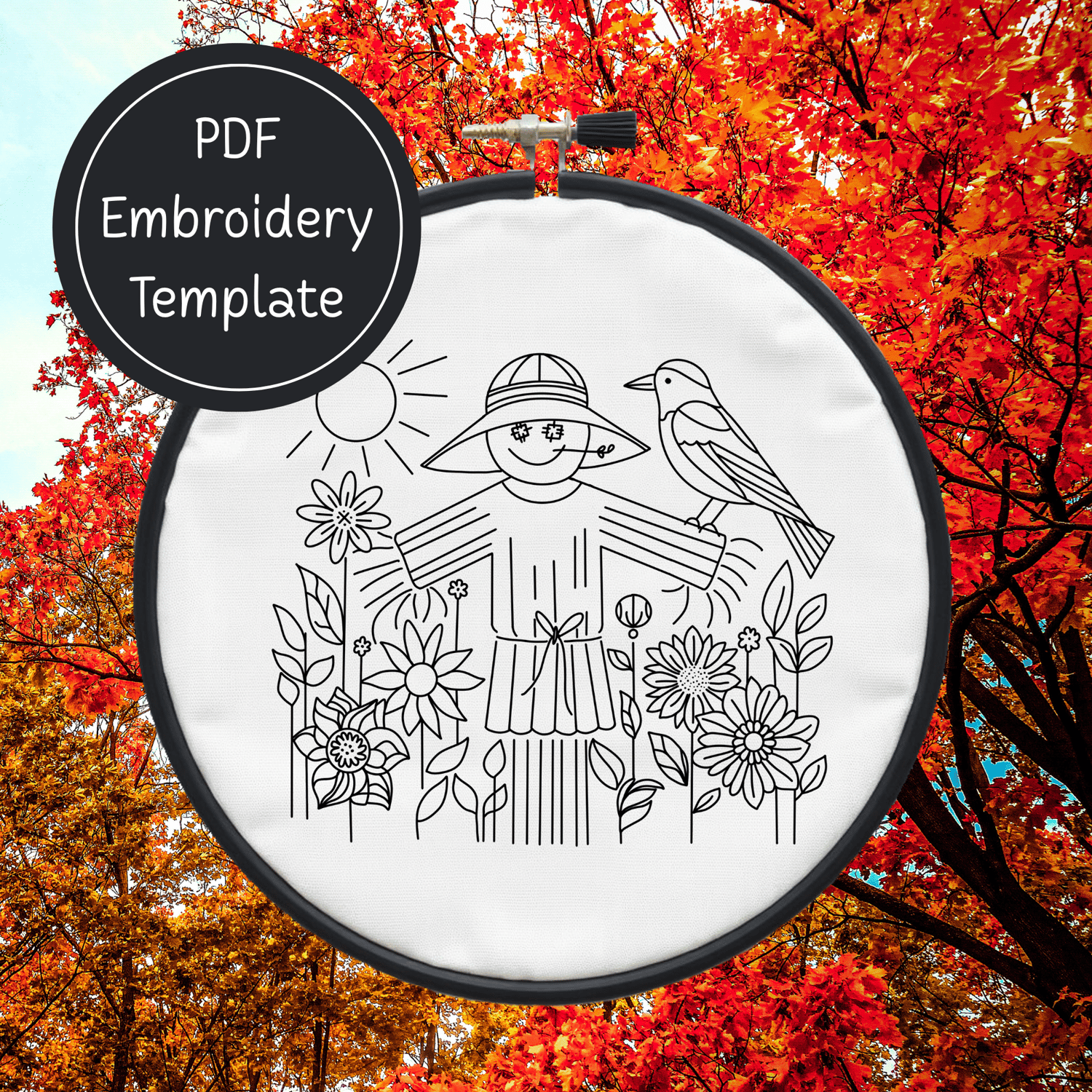 Fall Scarecrow Hand Embroidery Pattern DIY Autumn Design For Hand Stitching - Instant Download