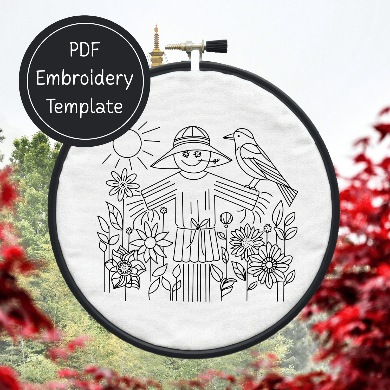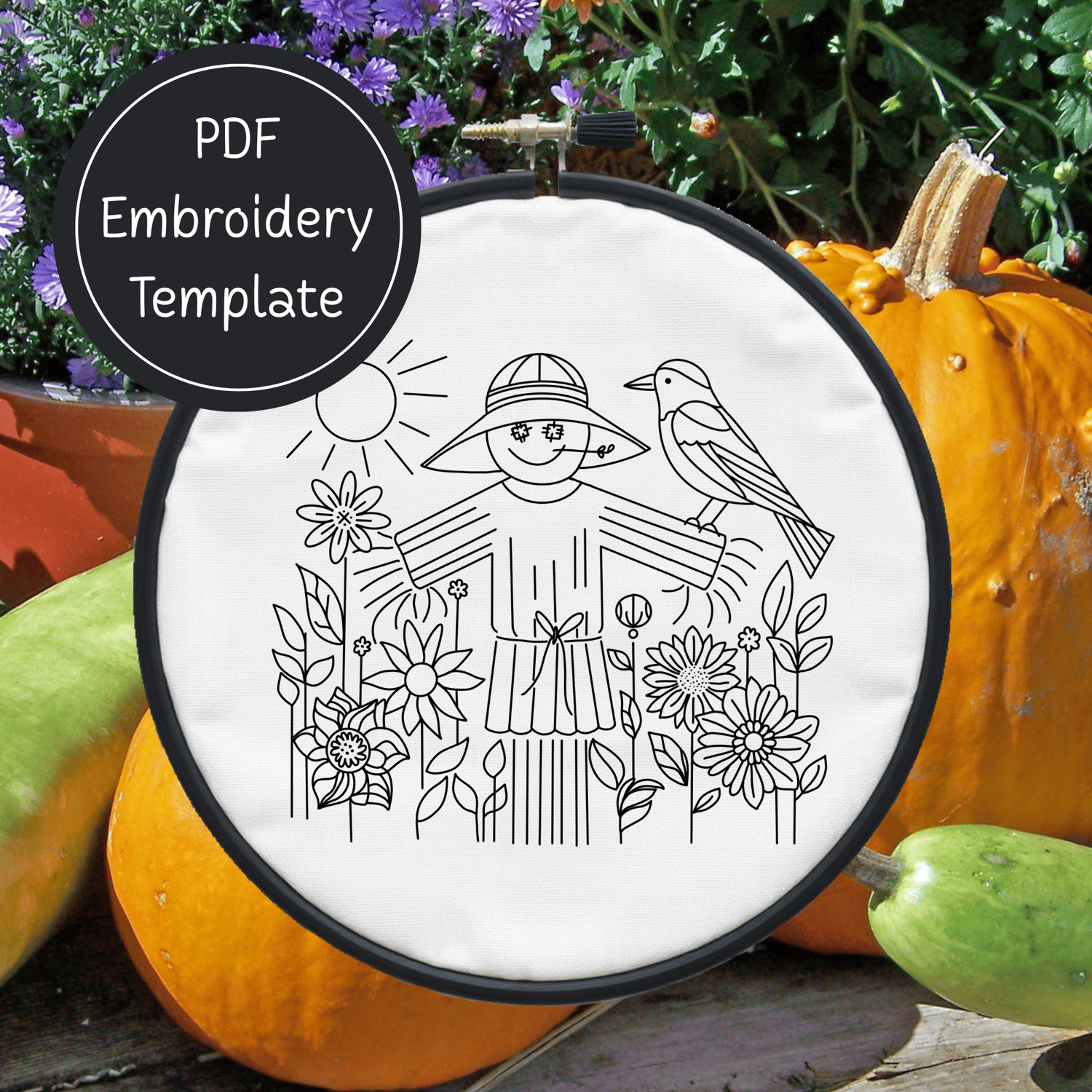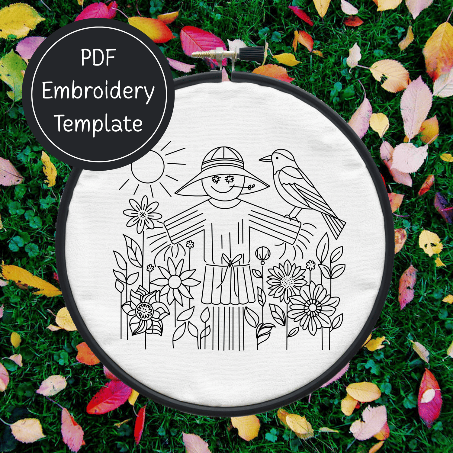 Fall Scarecrow Hand Embroidery Pattern DIY Autumn Design For Hand Stitching - Instant Download