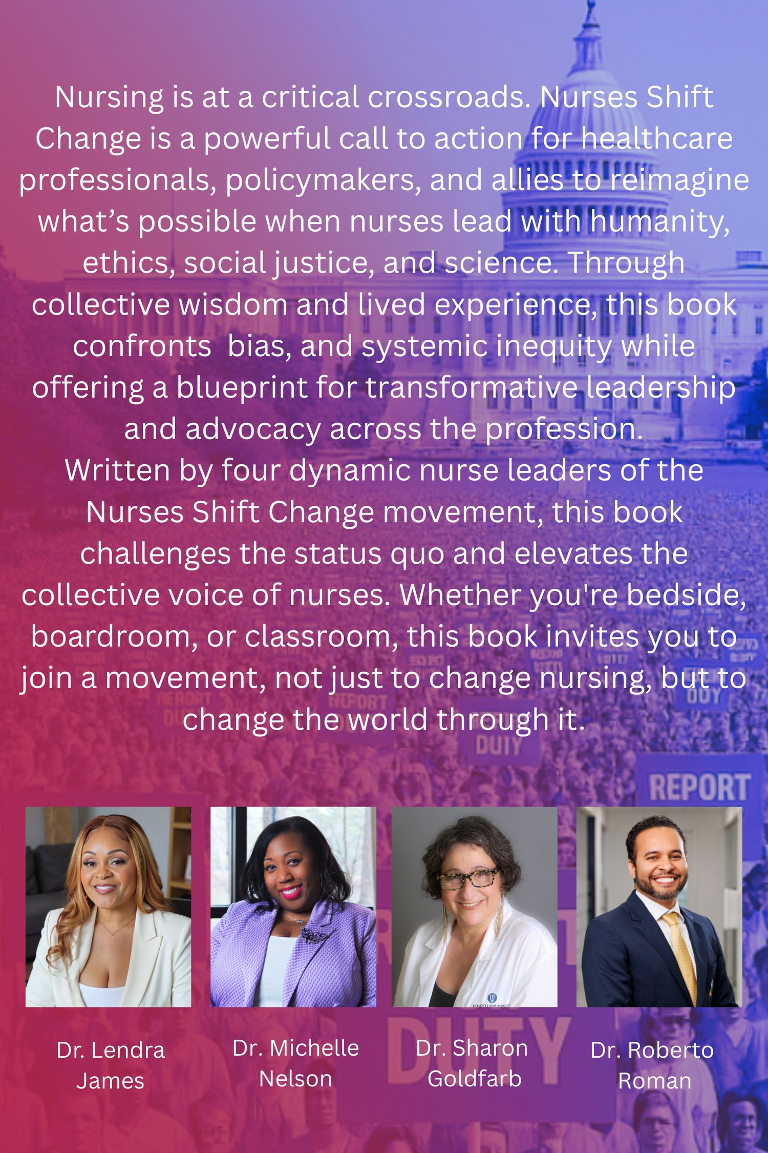 Nursing is at a critical crossroads. Nurses Shift Change is a powerful call to action for healthcare professionals, policymakers, and allies to reimagine what’s possible when nurses lead with humanity, ethics, social justice, and science. Through collective wisdom and lived experience, this book confronts bias, and systemic inequity while offering a blueprint for transformative leadership and advocacy across the profession.