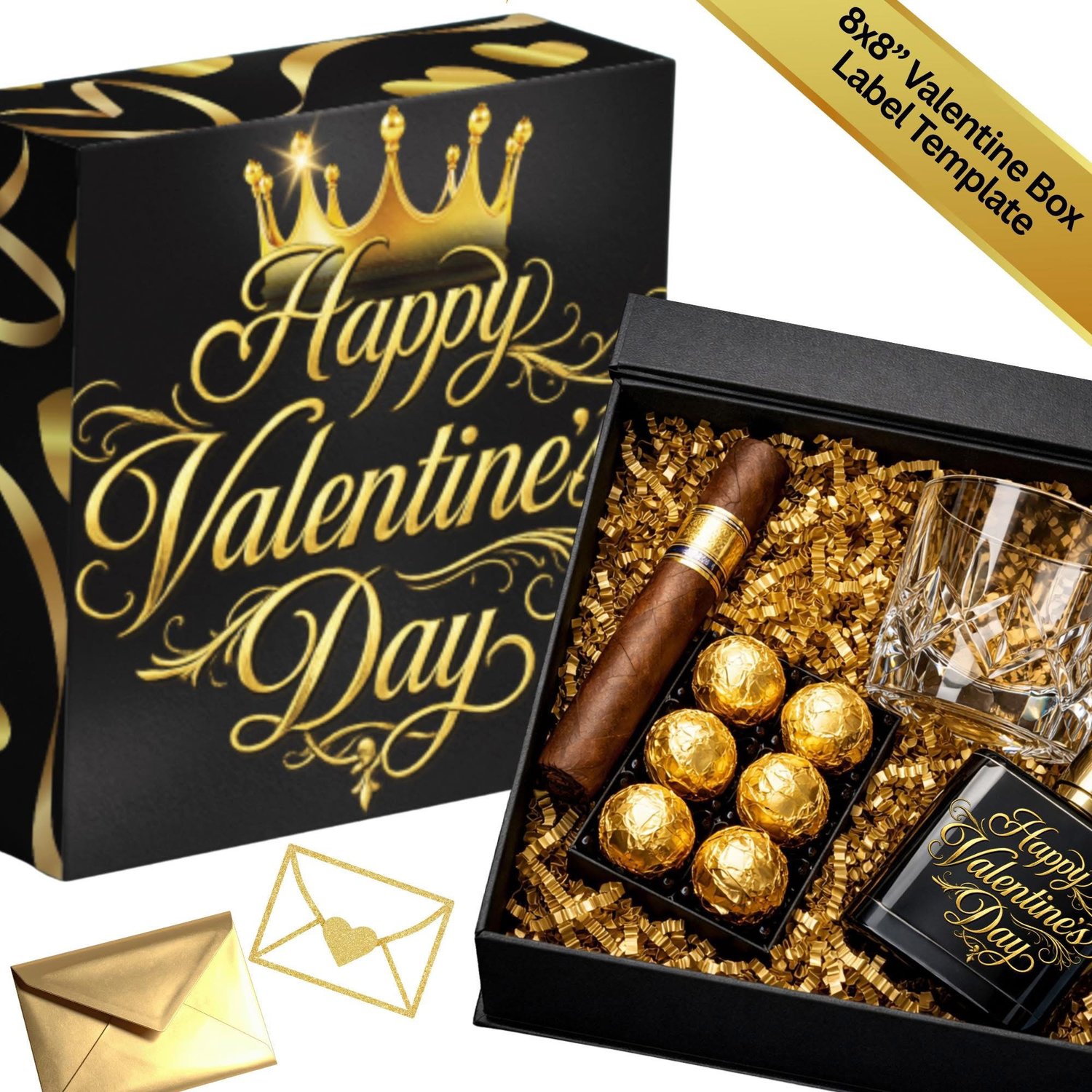 Create a sleek, polished gift box that’s perfect for him with this editable men’s gift box label template set. Designed to fit 8x8” boxes with 8x4” sides, this kit gives your packaging a bold, masculine finish ideal for birthdays, Father’s Day, Valentine’s Day, groomsmen gifts, or just because.