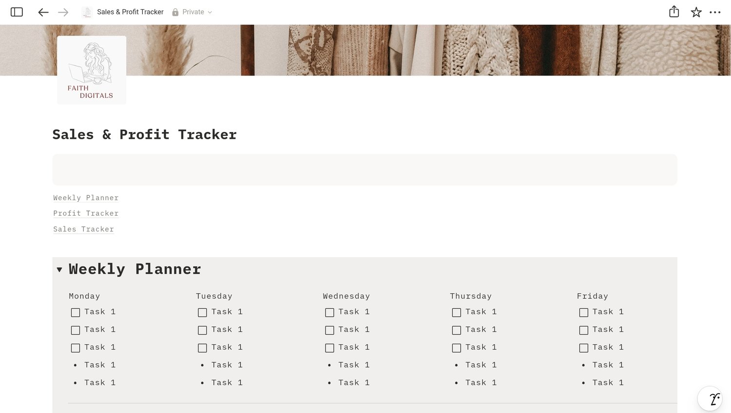 Stay organised and manage your sales profits with this easy-to-use Notion tracker, whether you sell on one platform or across multiple platforms.