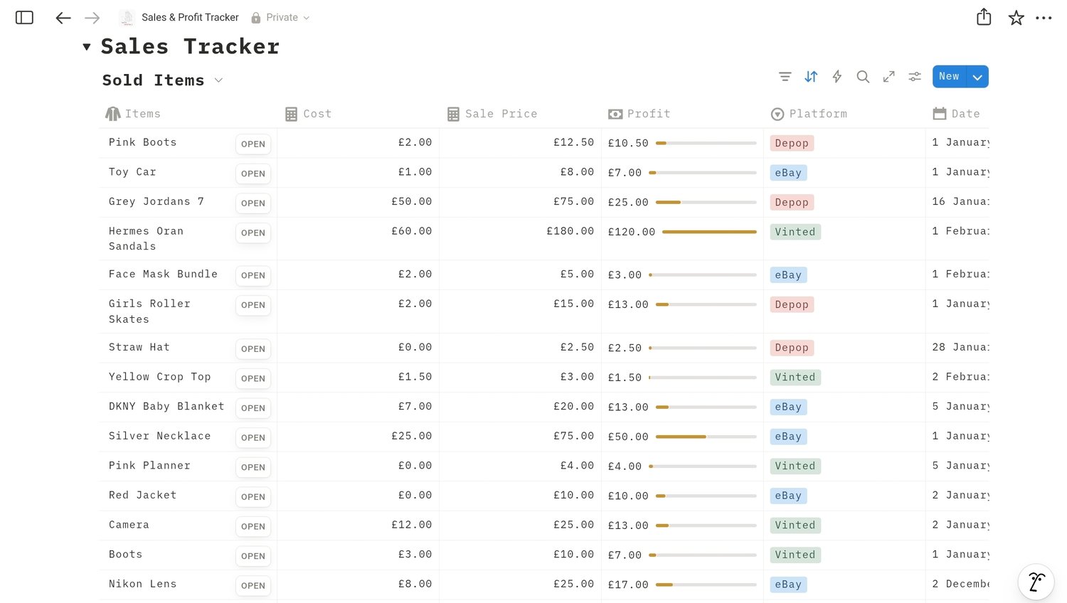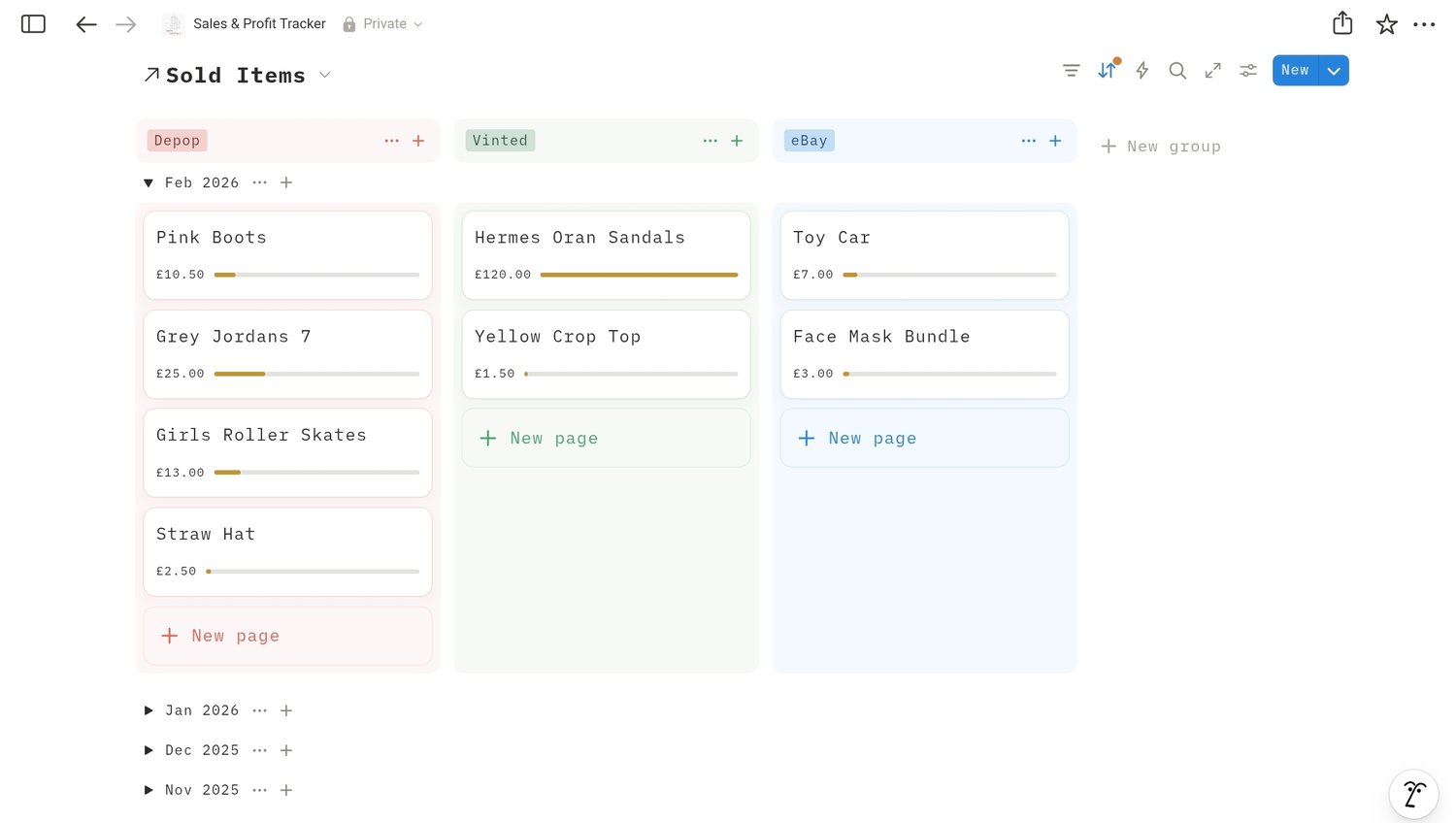 Free Notion Template - Sales & Profit Tracker for Vinted, Depop, eBay and all online sellers
