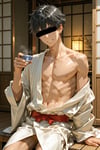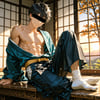 日本の正月をテーマに、着物を着用している男性を、キャラクターごとにお任せ作成しました。男らしいキャラクターの魅力を思い切って表現しました。