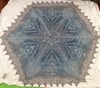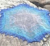A polygon design, worked from the centre out, in the round, this design contains lots of beads and is designed to mimic a snowflake.