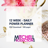Last year I was in search of a planner that I could use every day to keep me on track. I wanted something that would capture my daily "to do list" but also some of my entrepreneurial tasks. I found one or two that came close but I decided to just create my own! I am excited to offer the 12-week POWER PLANNER which includes a daily planner AND a weekly wrap up. This PDF can be used for a quarter or any 12 week period. When you are done with the 12 weeks, just print the planner again and start over!