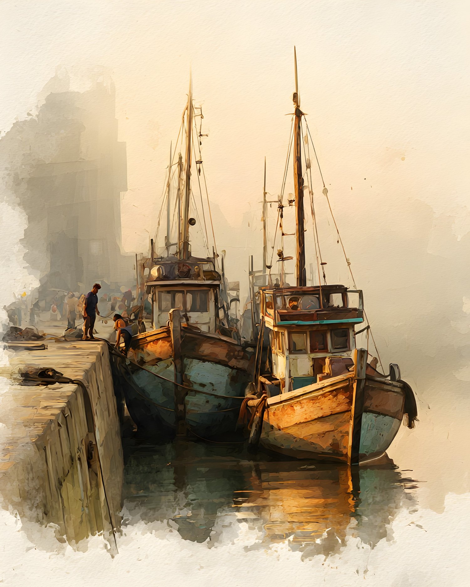 10 AI-generated JPG digital art prints – On the Dock – Harbor Ships & Port Life | Nautical Art Bundle. Digital download, wall art, storybook print, concept art, game environment design. High resolution 300 DPI, 8:10 format, 2400x3600 pixels, ready for print or digital use. Instant download, no physical product. Commercial license included.