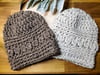 This is a fully customizable super bulky beanie pattern that comes in 3 sizes, S (child), M (small adult/teen), & L (adult). You can make it fitted or slouchy, and it works up quickly. I used less than 1 skein of yarn for each size, along with a 12mm crochet hook.