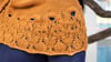 When this beautiful golden yarn first arrived on my doorstep I was immediately captivated. It was the middle of January, and we were expecting snow to start falling any minute. The yarn color made me think of the warm golden days of summer, so I had to find stitches that evoked that same feeling. I decided to start with a cascade of falling leaves, then move into a veritable swarm of bees… while a parade of suns shines its light on the day.