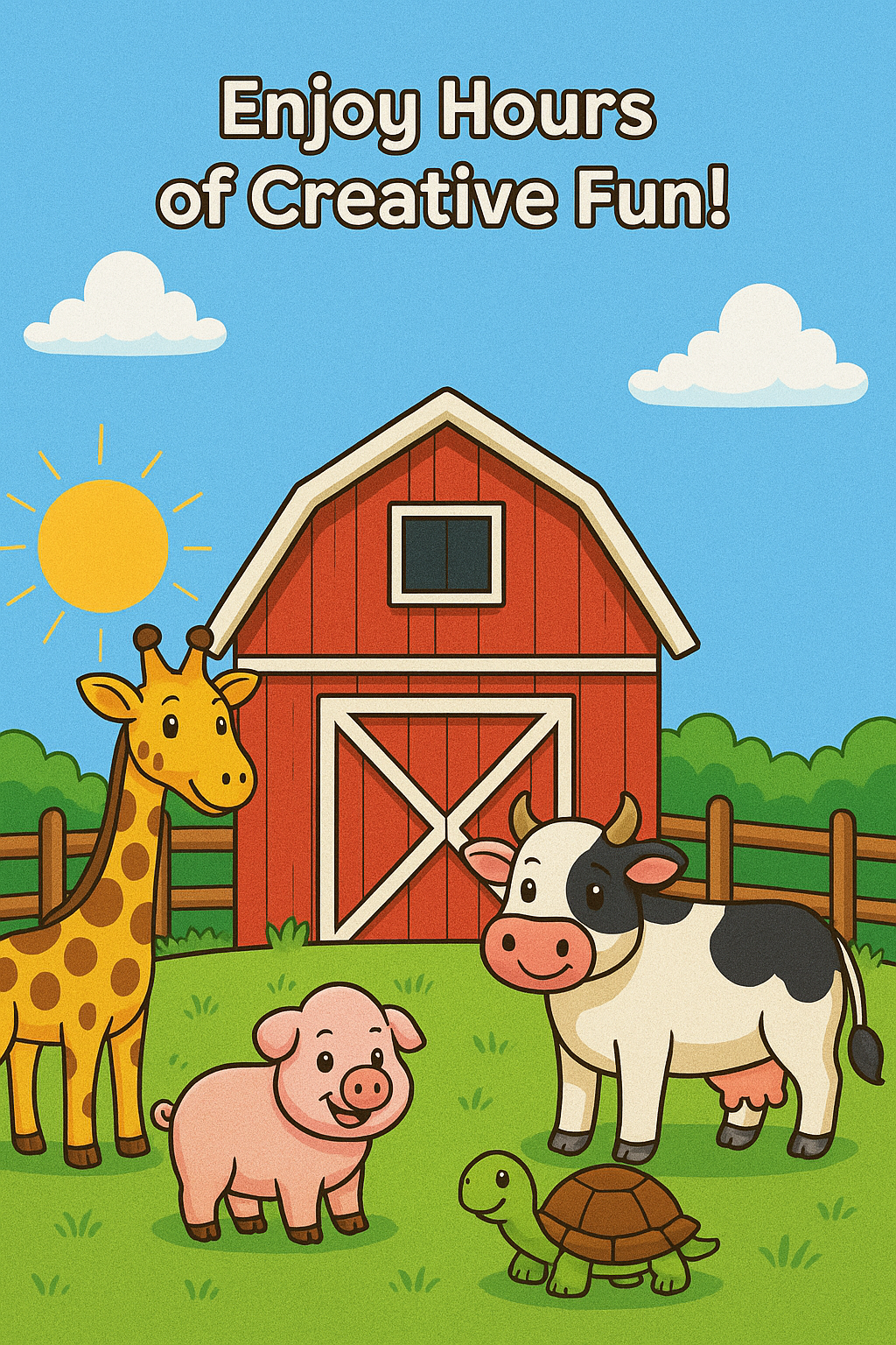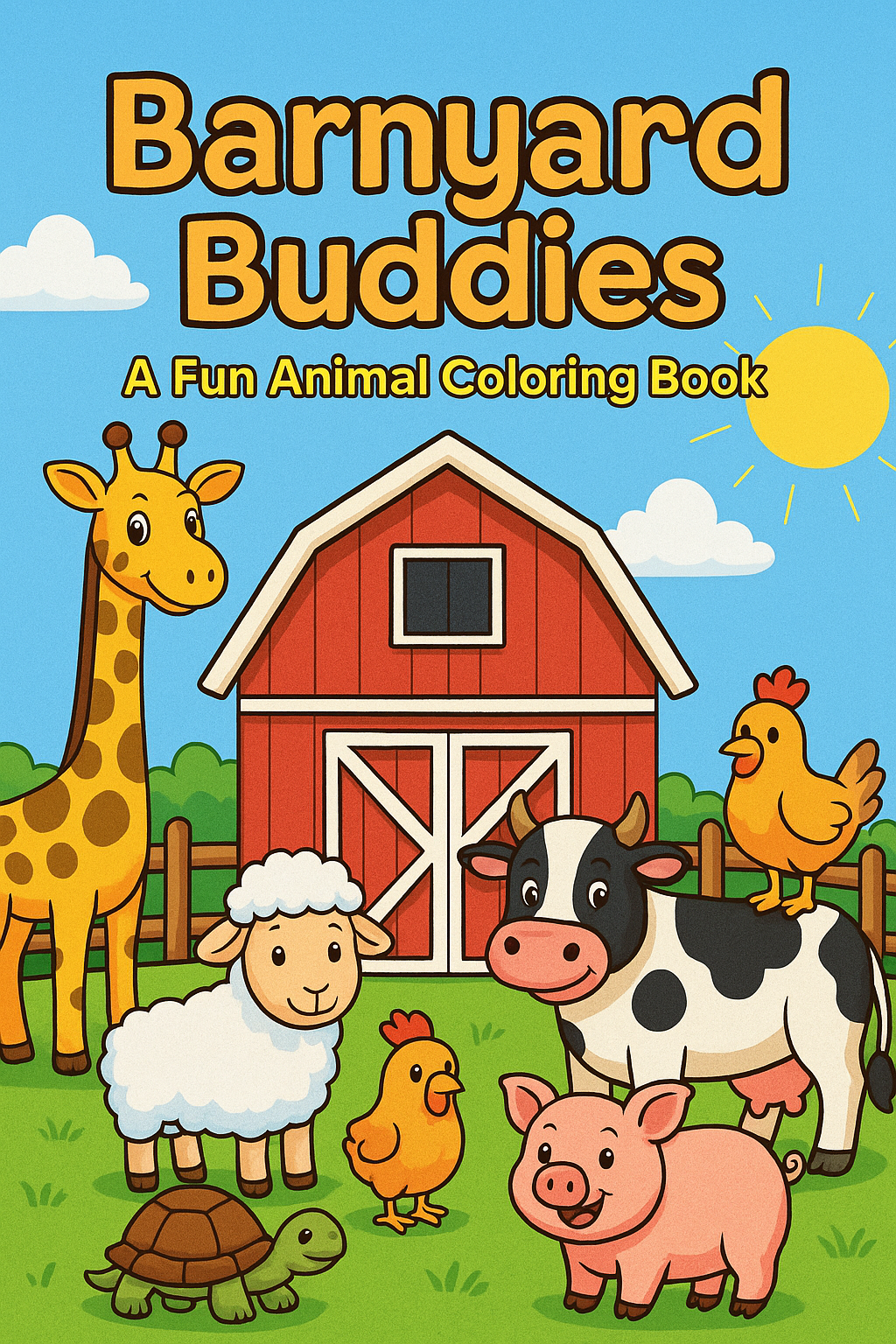 Barnyard Buddies features fun, easy-to-color illustrations of farm animals like goats, rabbits, dogs, horses, and even a farm girl and eagle. Perfect for toddlers and preschoolers who love animals and coloring!