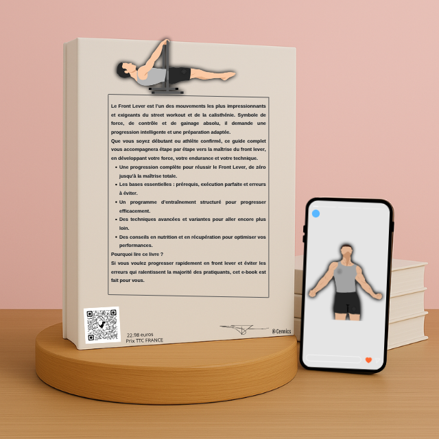 The front lever is one of the most iconic and impressive movements in calisthenics. It perfectly embodies the mastery of core strength, back strength, and discipline. This e-book guides you step by step to mastering this legendary move, thanks to a clear, progressive, and accessible method.