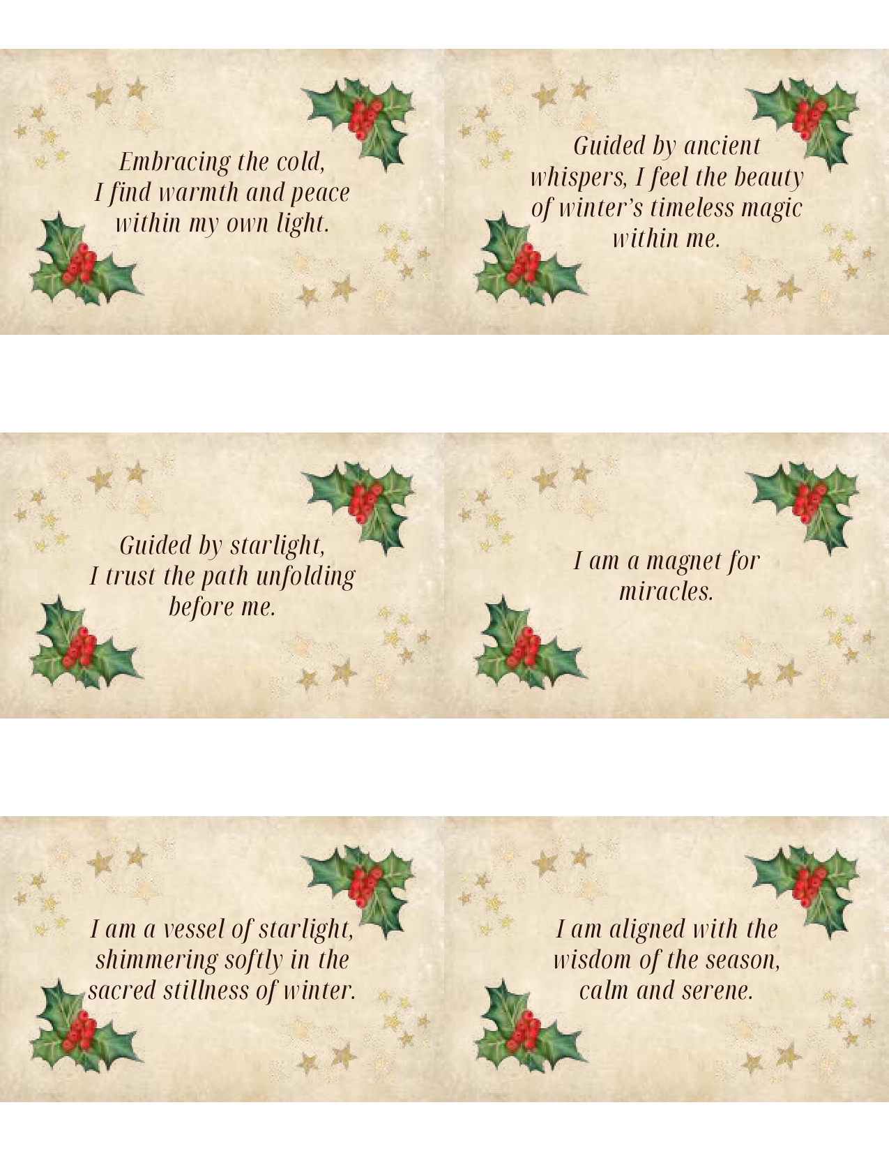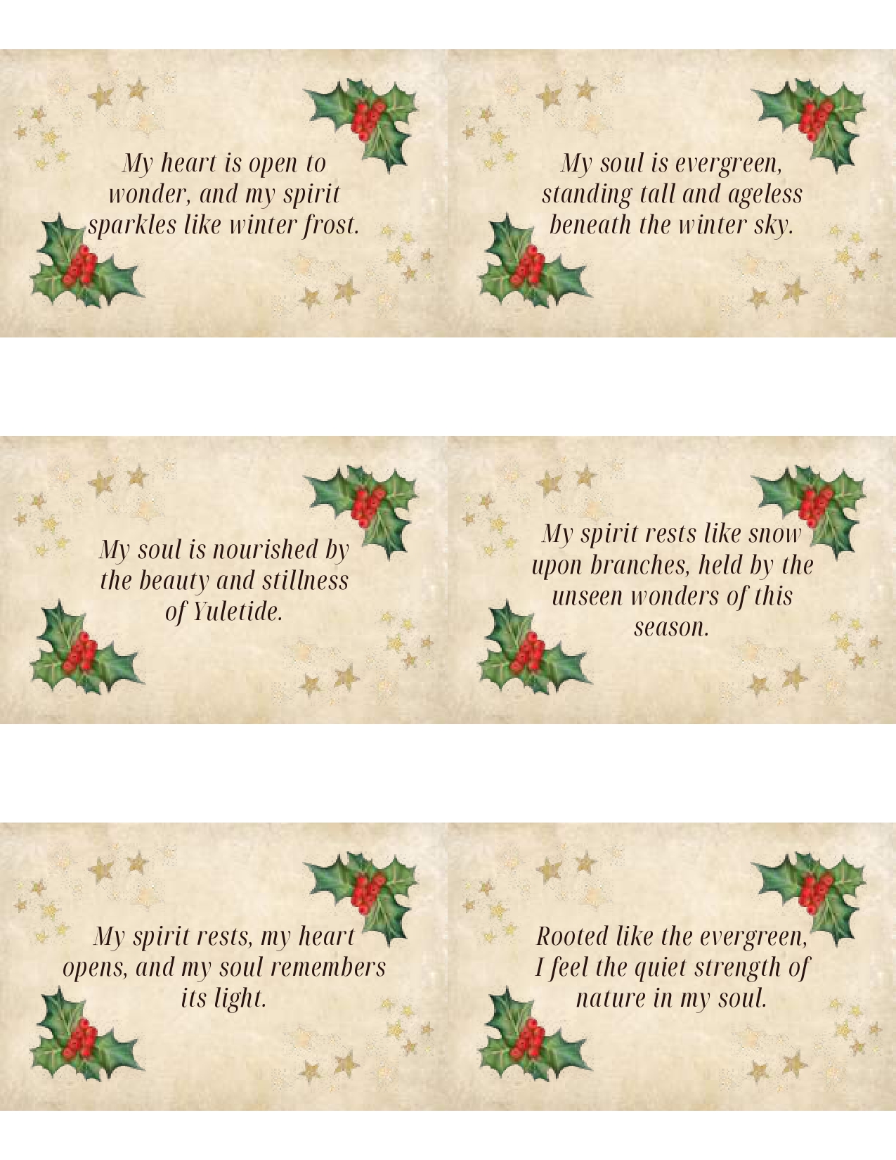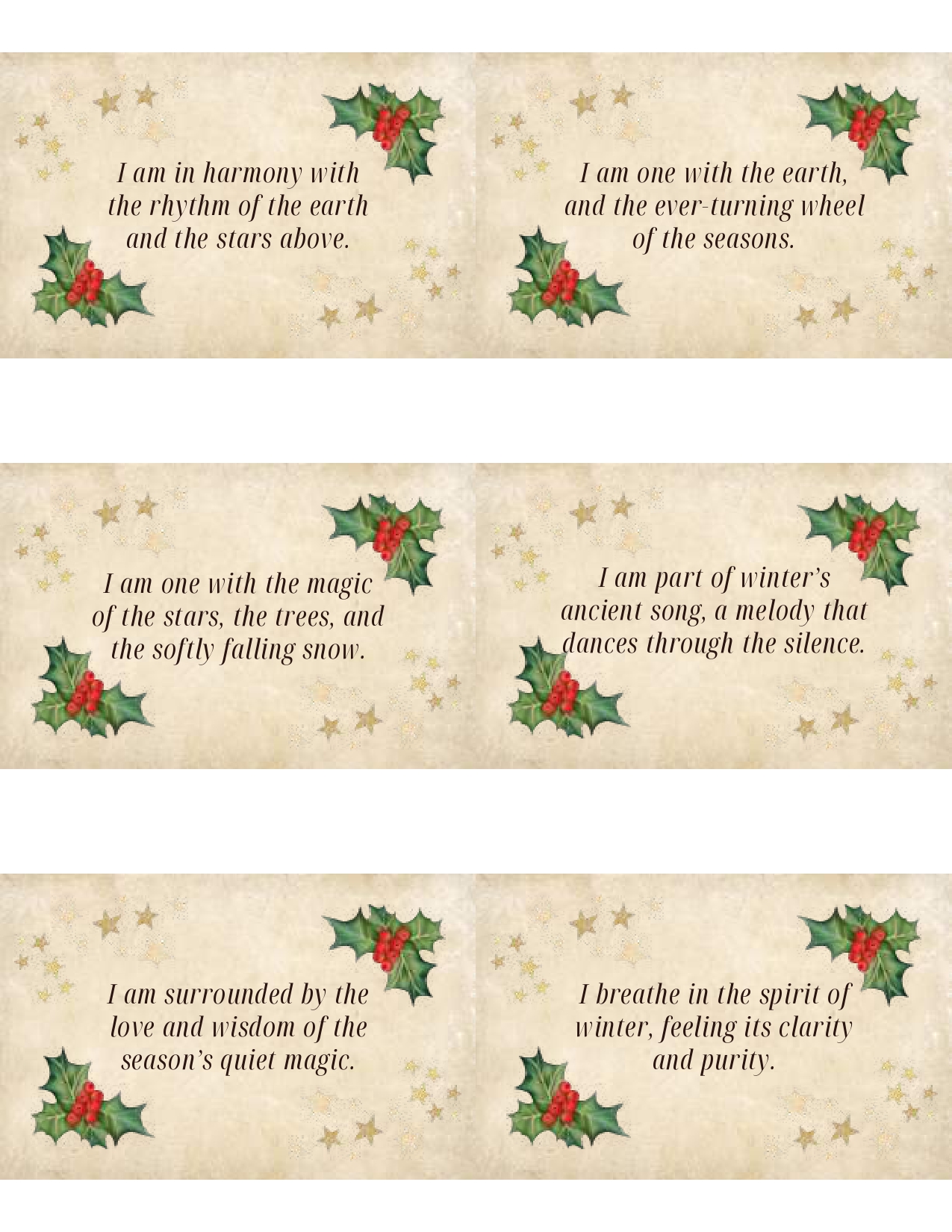 Yuletide Affirmation Cards: PDF Printable