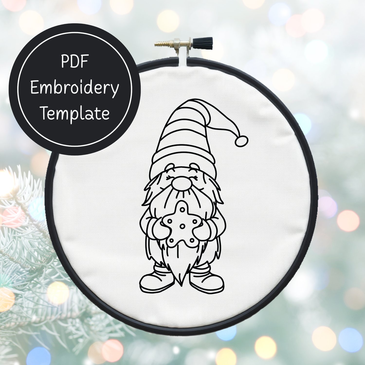 Christmas Elf Hand Embroidery Template PDF - DIY Holiday Design For Hand Stitching - Instant Download