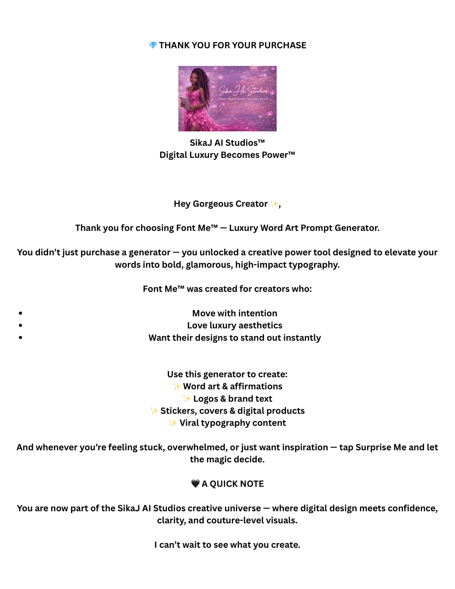 Whether you’re a content creator, coach, digital seller, journal creator, or brand builder, this generator gives you clarity, structure, and flow — without creative burnout.