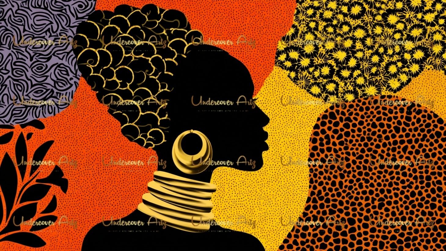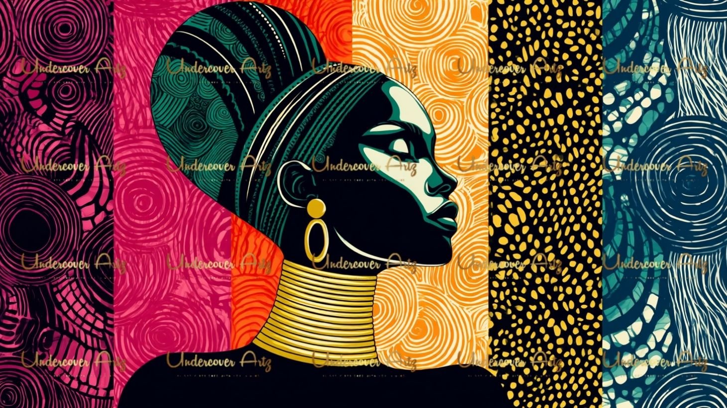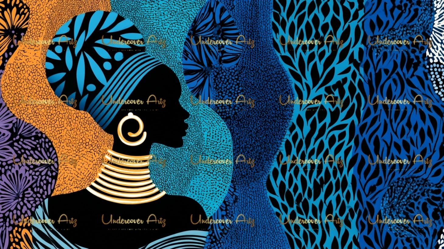 Each image is a visual celebration of culture and identity, styled with regal headwraps, gold accessories, and rich, textured backgrounds. Perfect for elevating your creative projects with unapologetic Black feminine energy.