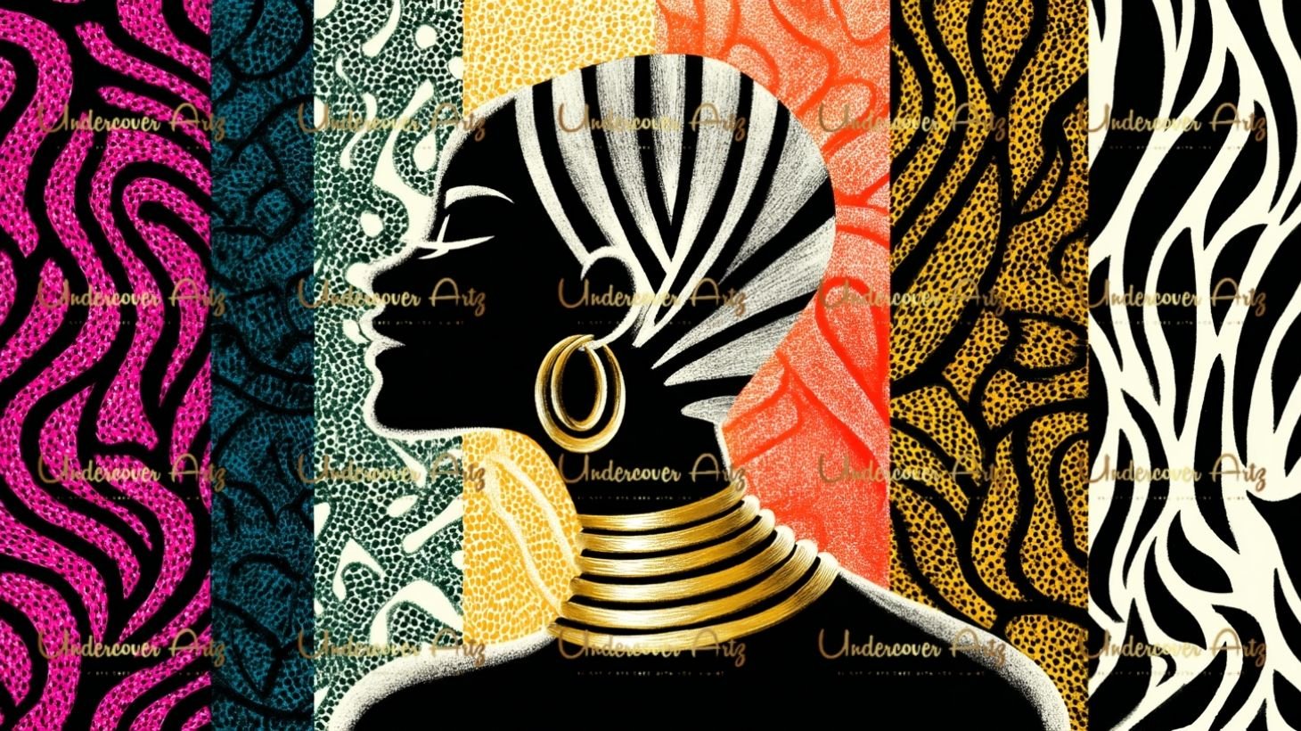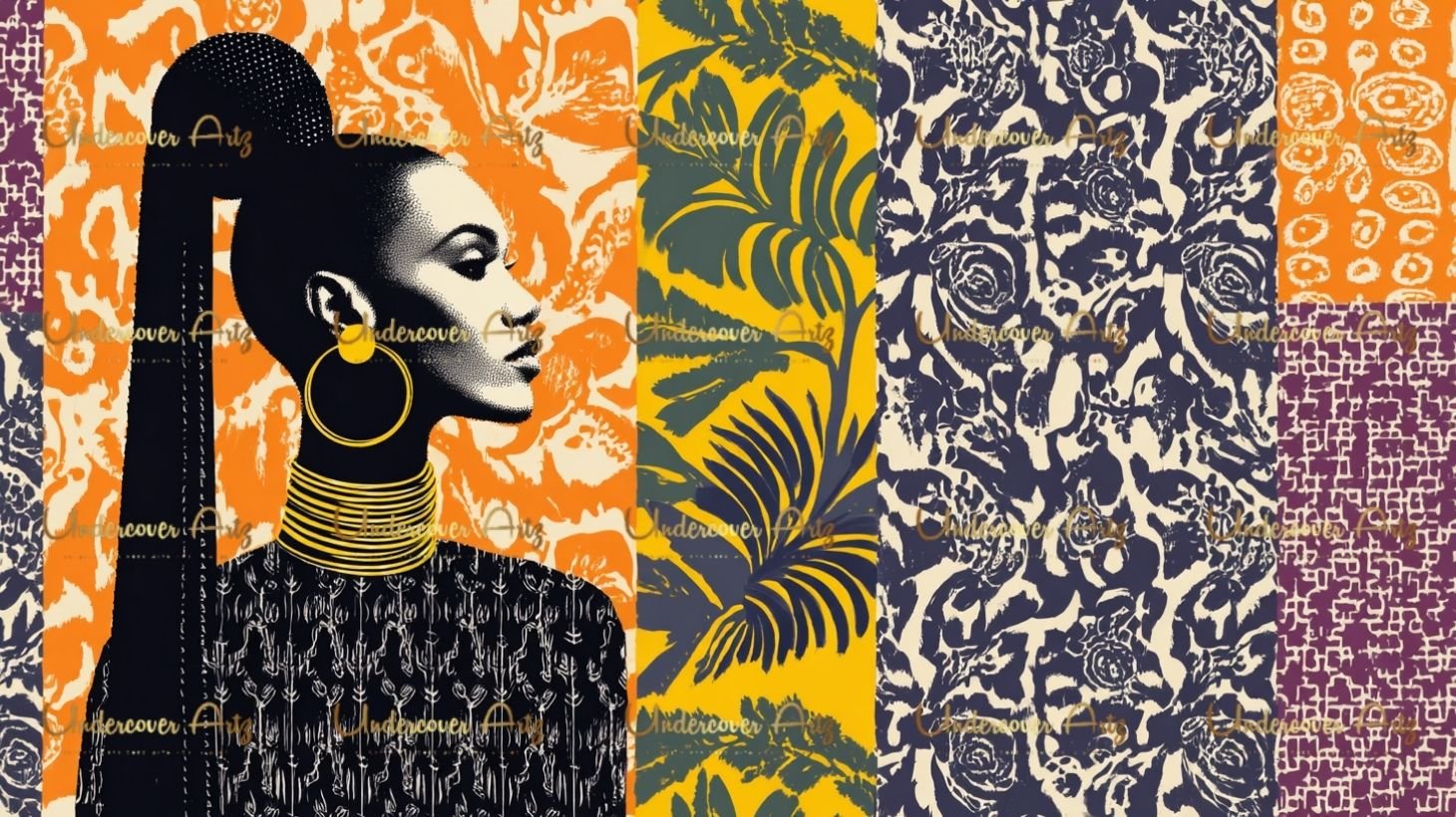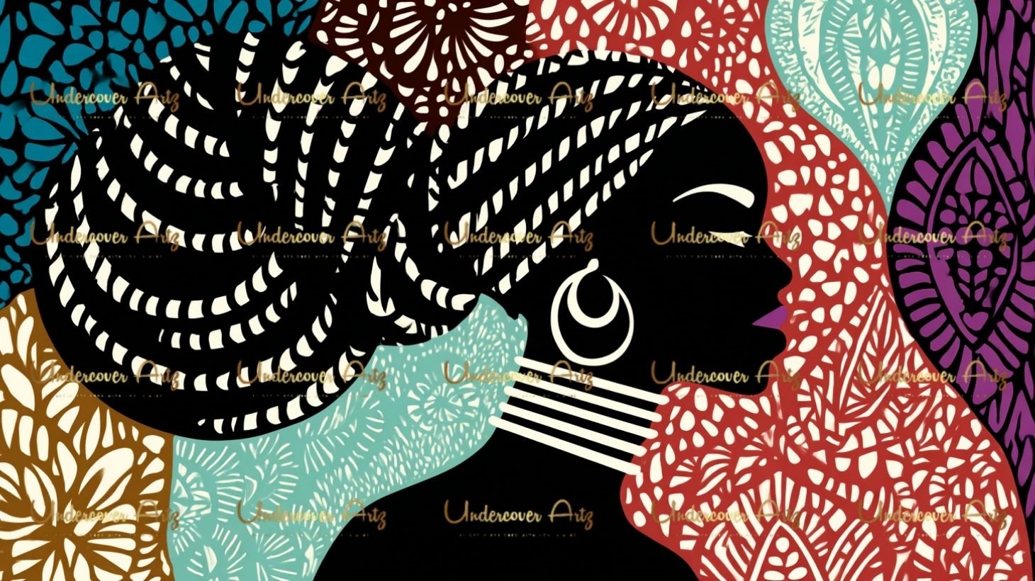 Each image is a visual celebration of culture and identity, styled with regal headwraps, gold accessories, and rich, textured backgrounds. Perfect for elevating your creative projects with unapologetic Black feminine energy.
