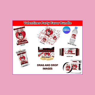 This template bundle includes ready-made Party Favor templates, featuring our Red and Black Valentine's Day themed party favor designs.