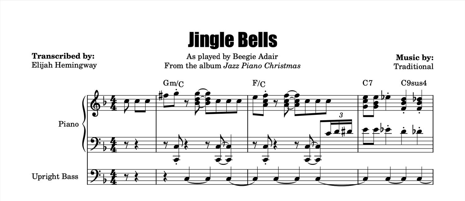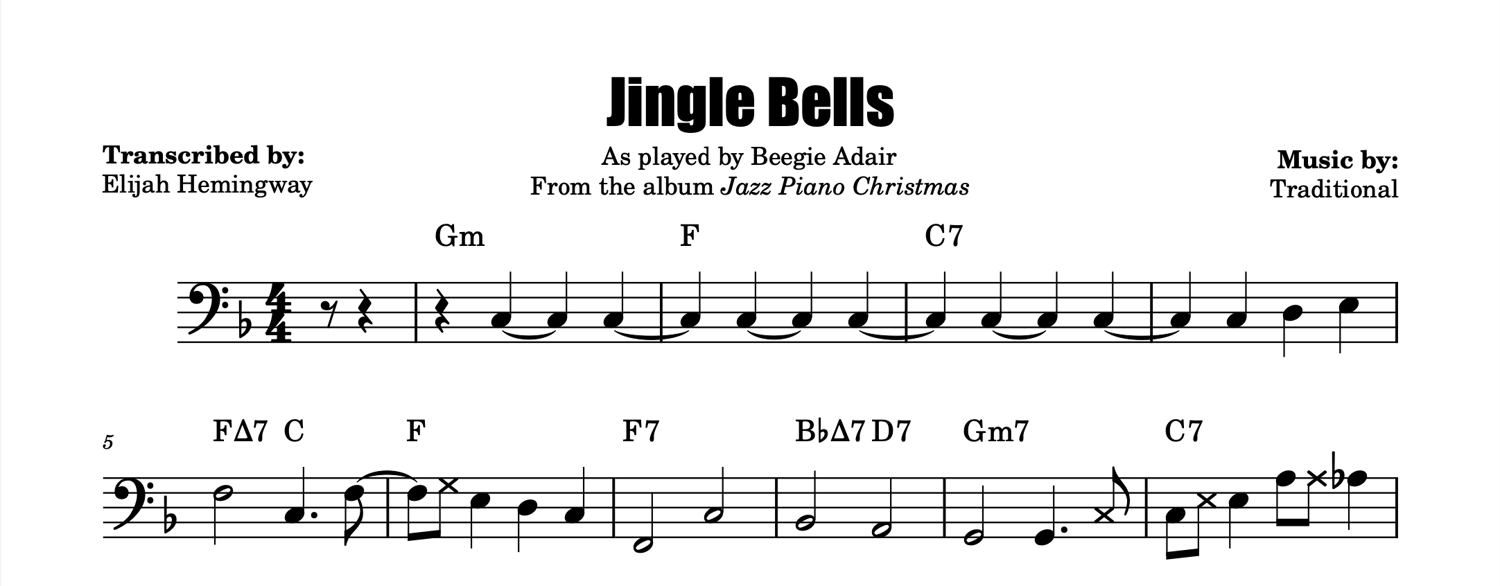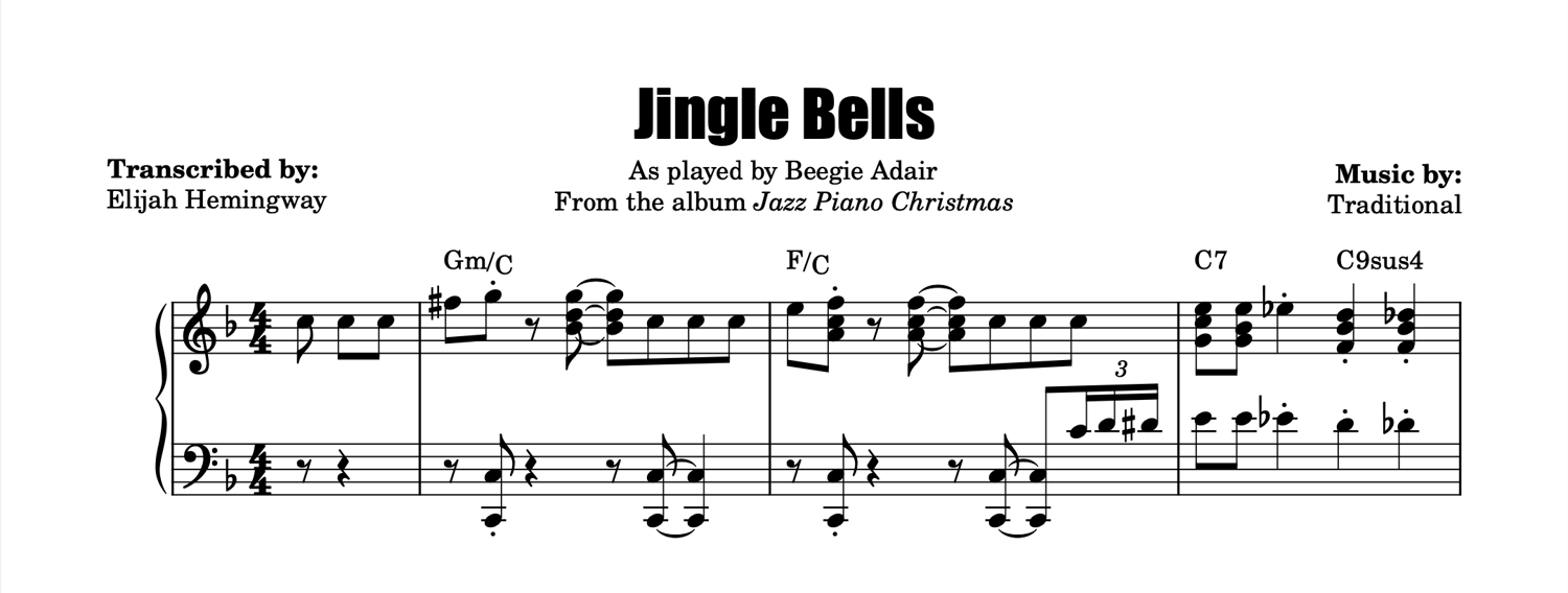 Jingle Bells - Beegie Adair (Piano and Bass Score)