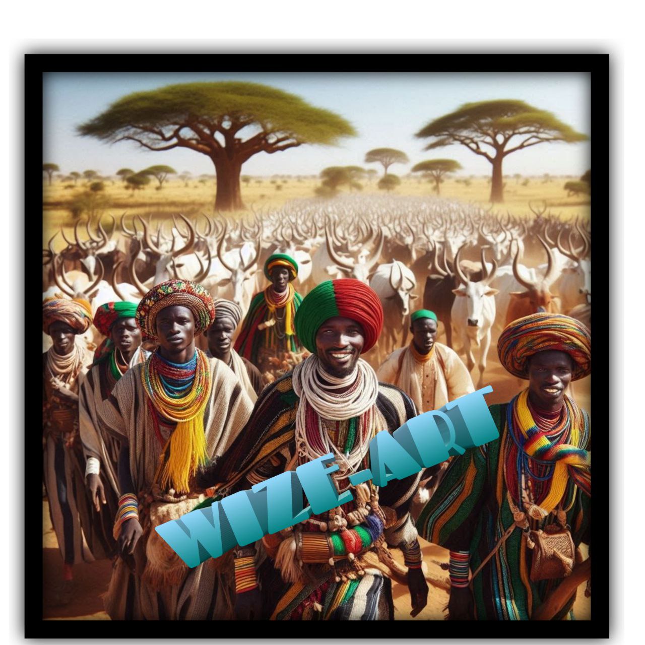 Celebrate the rich culture and vibrant traditions of the Fulani people with this captivating digital art collection. Each piece vividly portrays the traditional attire and pastoral lifestyle of the Fulani, perfect for adding a touch of cultural richness and beauty to any space. These artworks capture the essence of the Fulani heritage, known for their colorful garments and nomadic spirit.