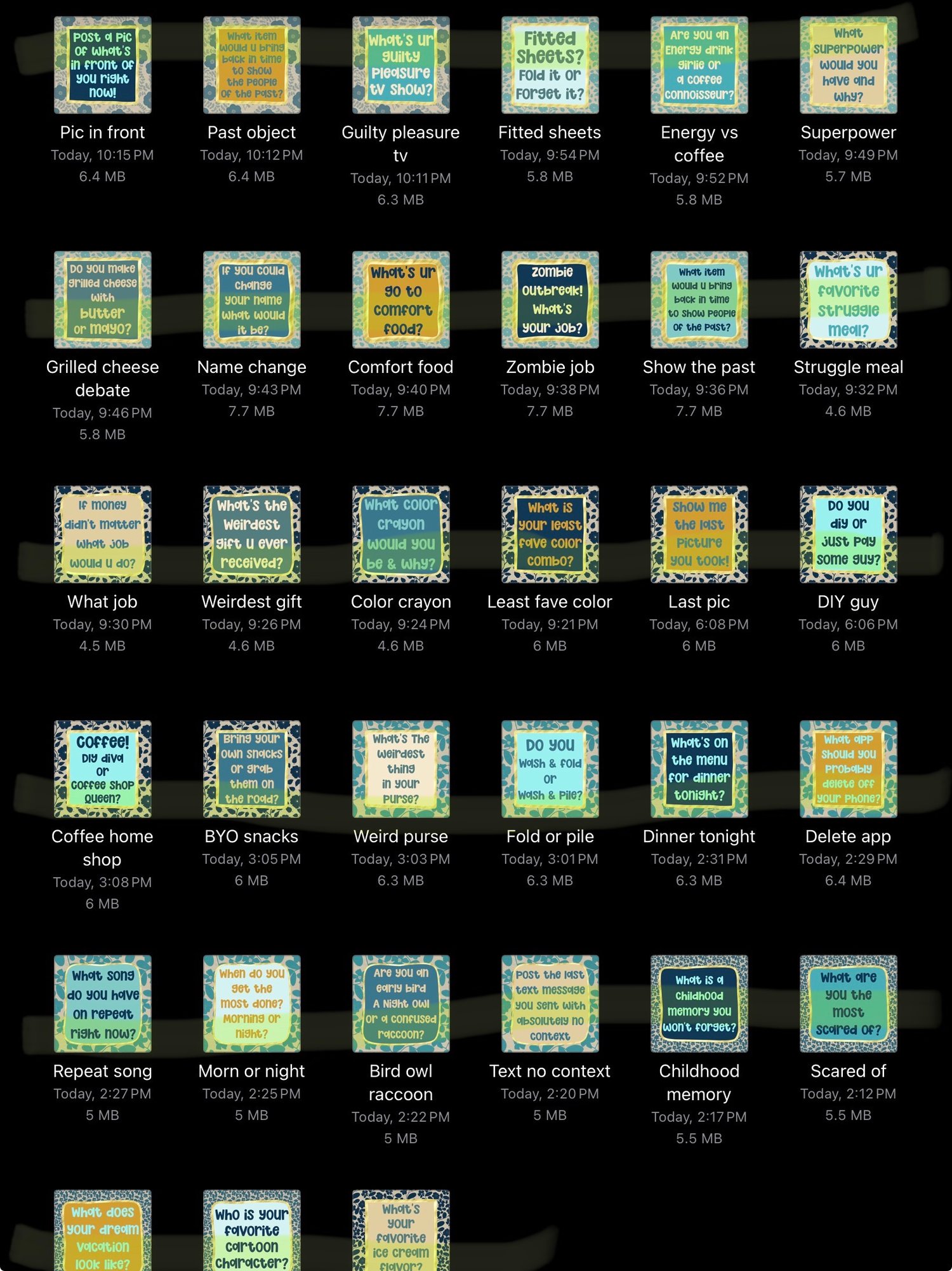 This set contains 33 individual images with fun questions to help boost your engagement!