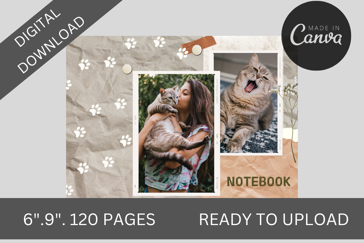 CAT THEMED KDP LINED PAPER INTERIOR+COVER, LOW CONTENT BOOK FOR KDP READY UPLOAD, KDP JOURNAL PAPER, JOURNAL NOTEBOOK MOCKUPS, KDP CANVA NOTE