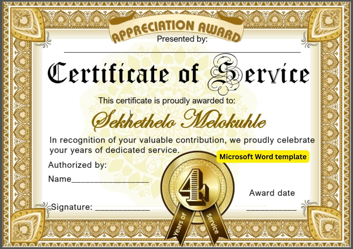 - 1 Microsoft Word (.docx) certificate template