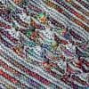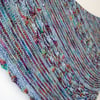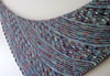 Echo Azure is a study on the interplay between variegated and solid yarns. Named after a butterfly with frosty, iridescent wings, the shawl is made of garter stitch, stripes, and shell stitches formed with knit-below stitches.Starting from the upper right corner, the shawl is knit on the bias to create an asymmetric triangle that is both comfortable to wear and fun to work on. A shell-stitch border and a stretchy bind-off finish off the design.