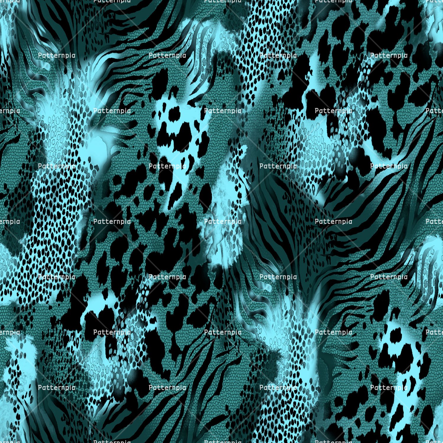Electric blue wild animal textures with dark zebra stripes.