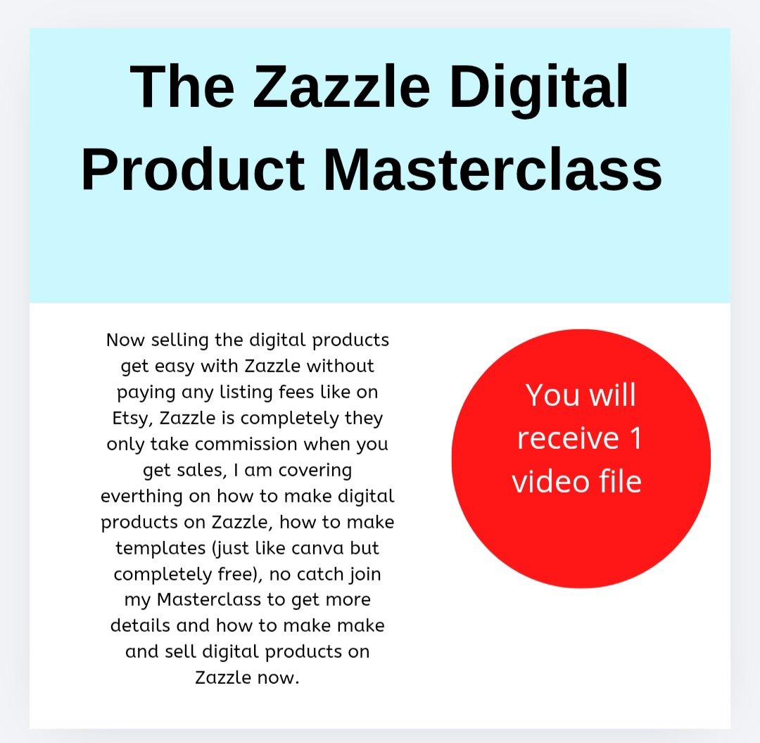Now selling the digital products get easy with Zazzle without paying any listing fees like on Etsy, Zazzle is completely they only take commission when you get sales, I am covering everthing on how to make digital products on Zazzle, how to make templates (just like canva but completely free), no catch join my Masterclass to get more details and how to make make and sell digital products on Zazzle now.