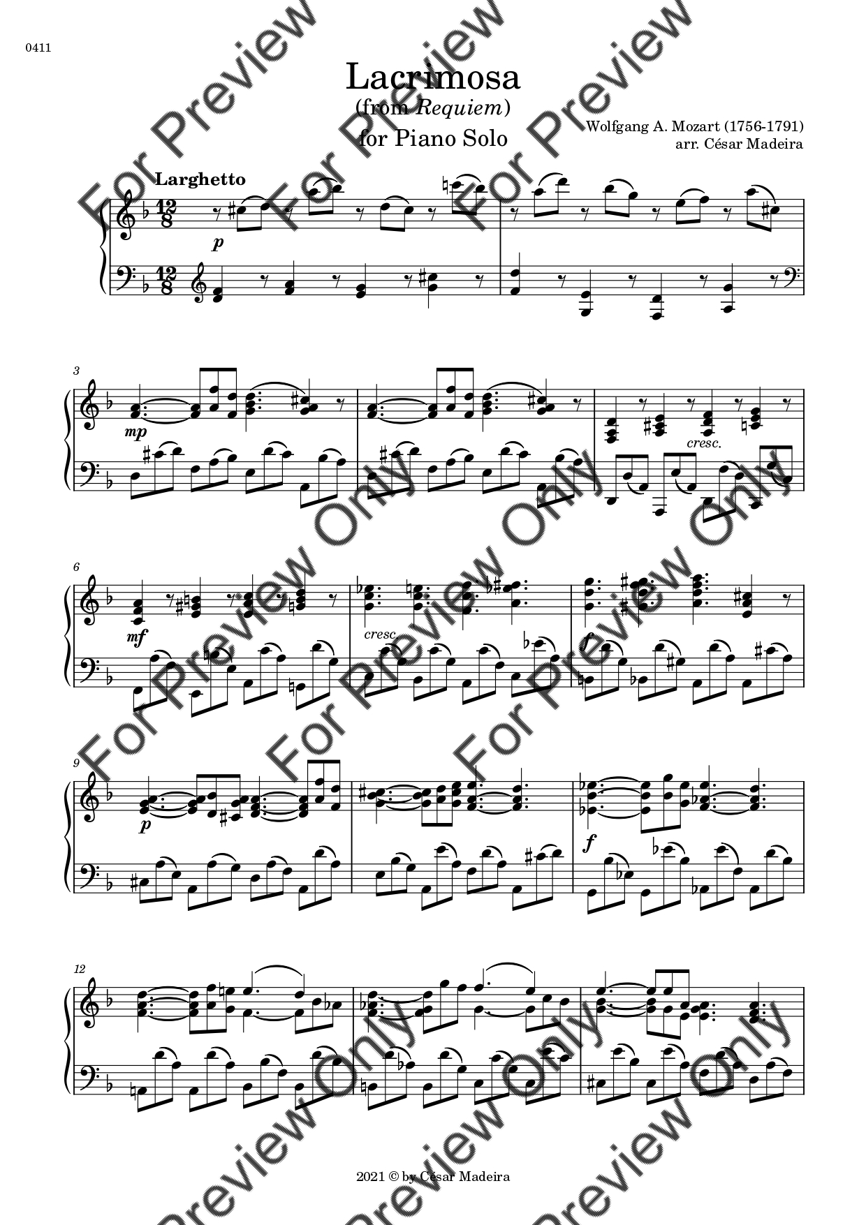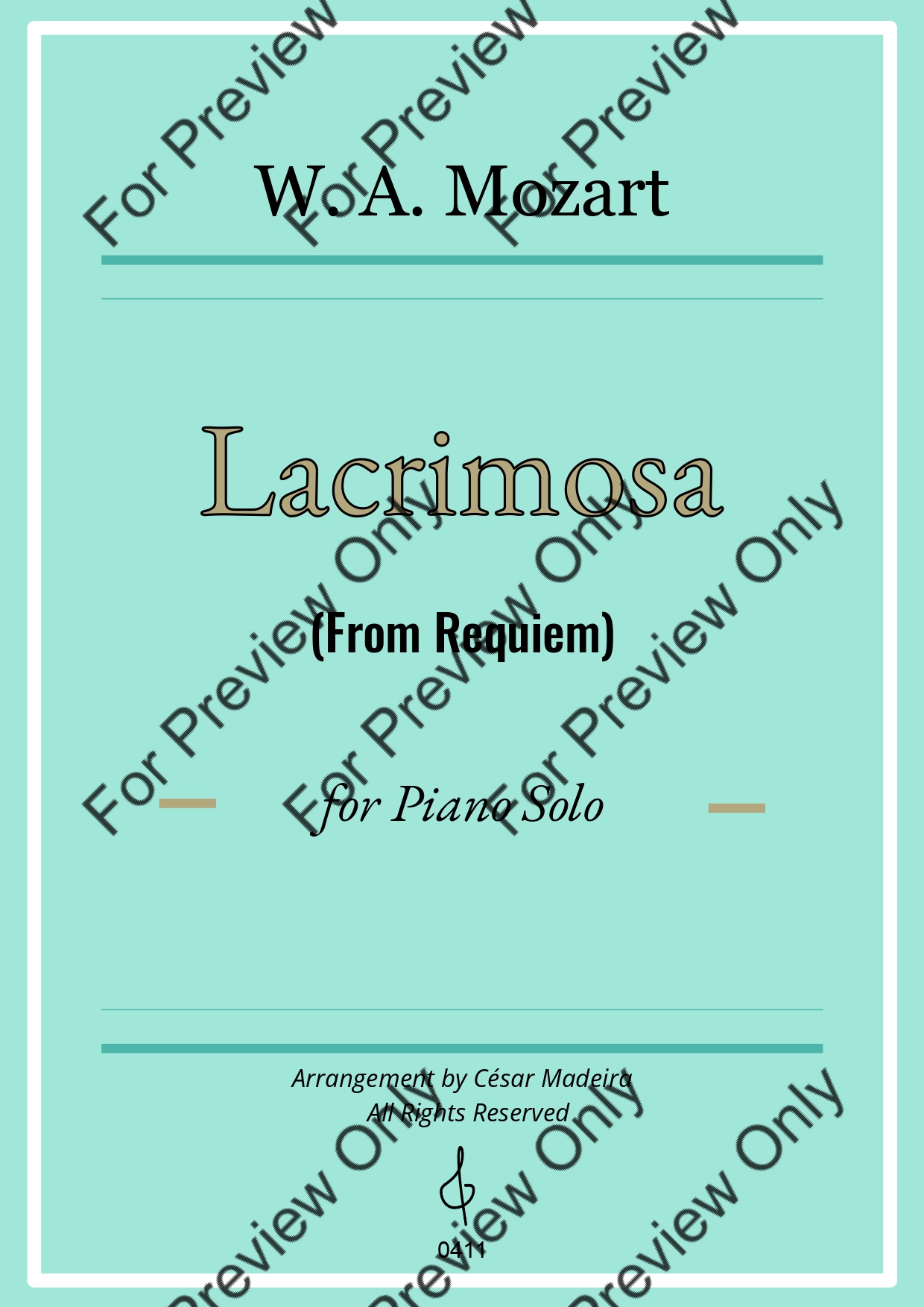 Lacrimosa by Wolfgang Amadeus Mozart. Arrangement for Piano Solo. With Full Score. Have fun!