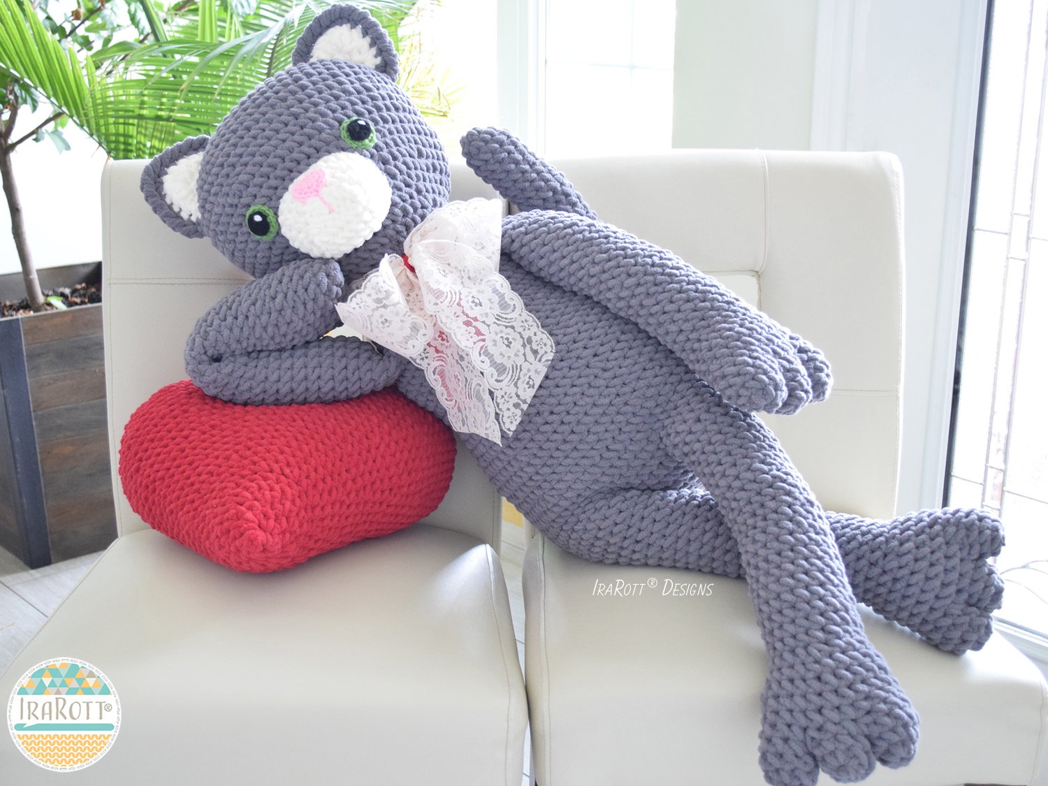 CROCHET PATTERN Sassy The Kitty Cat With Heart Big Amigurumi