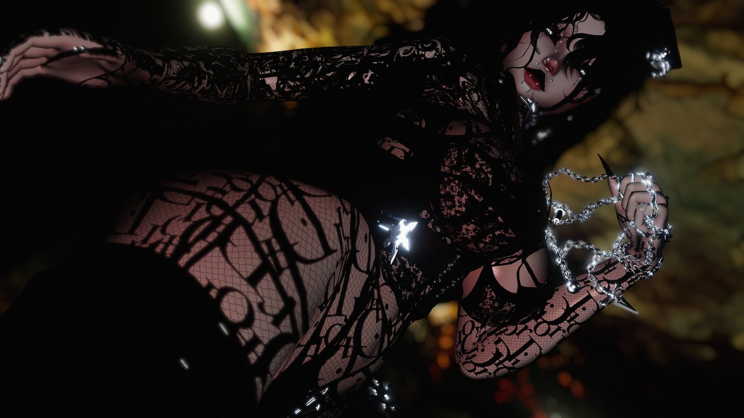 •face piercing, ring, shurikens, and ear plugs AND LATEX CORSET/CROSS PANTIES