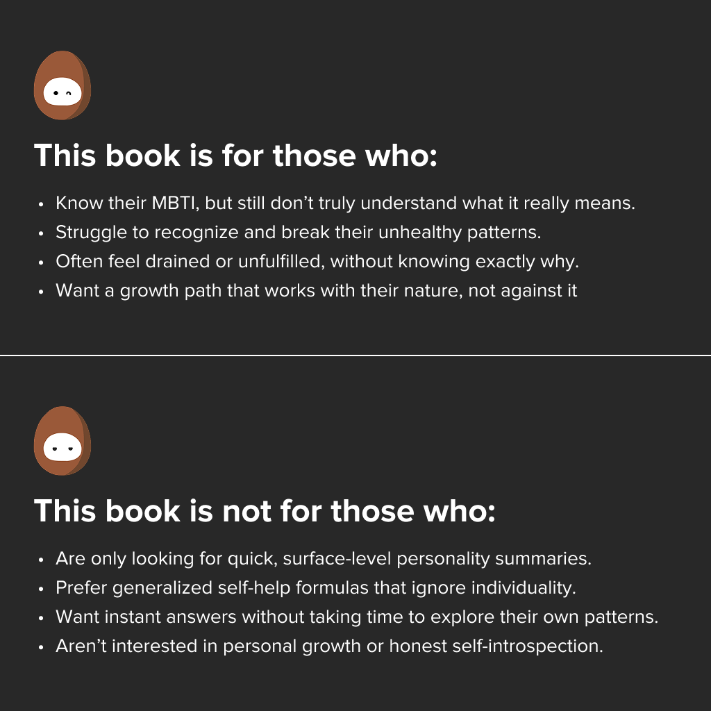 Each of the 16 MBTI personalities gets its own carefully curated content. We prioritize clarity at every step, while making sure every illustration earns its place in both meaning and quality.