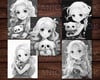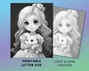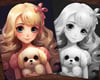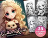 28 Critter & Cutie Anime Girl + Pet Coloring Book, Adults kids Instant Download -Grayscale Coloring -Printable PDF, Animal Love, Friendship