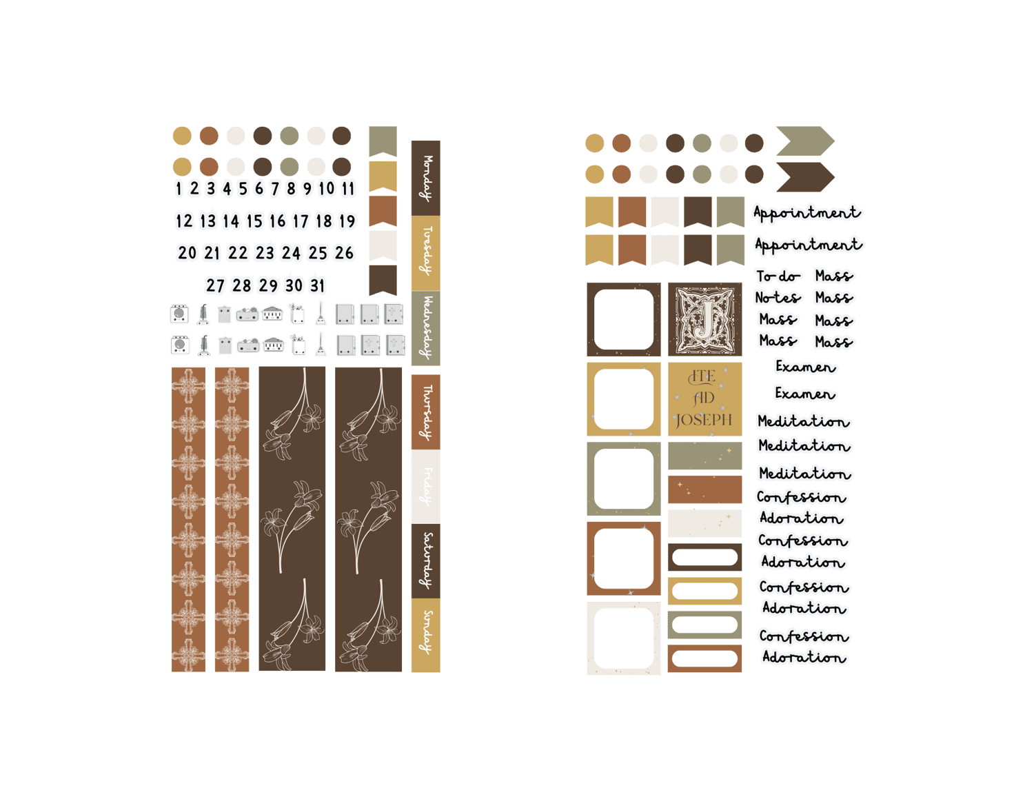 St. Joseph – Printable Monthly Planner Sticker Kit – Catholic – Hobonichi Weeks