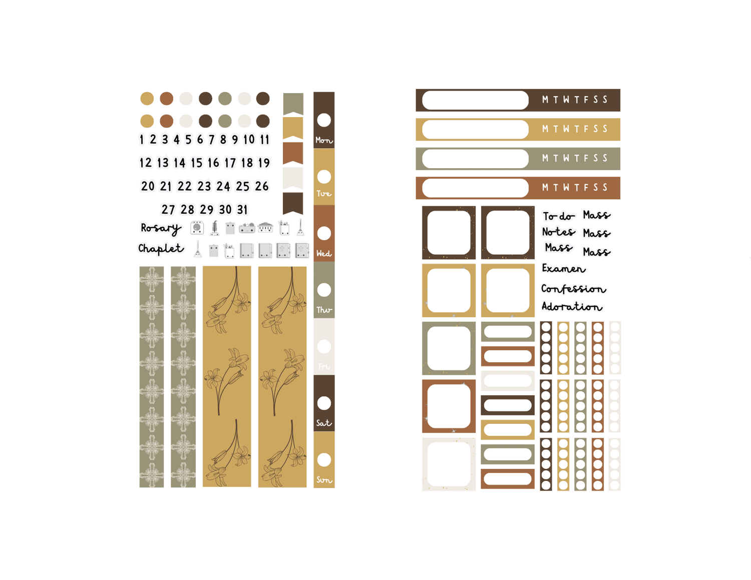 Celebrate St. Joseph’s feast with this printable monthly kit tailored for Hobonichi Weeks. Gentle Marian blues and liturgical icons bring peace and purpose to your monthly spread.