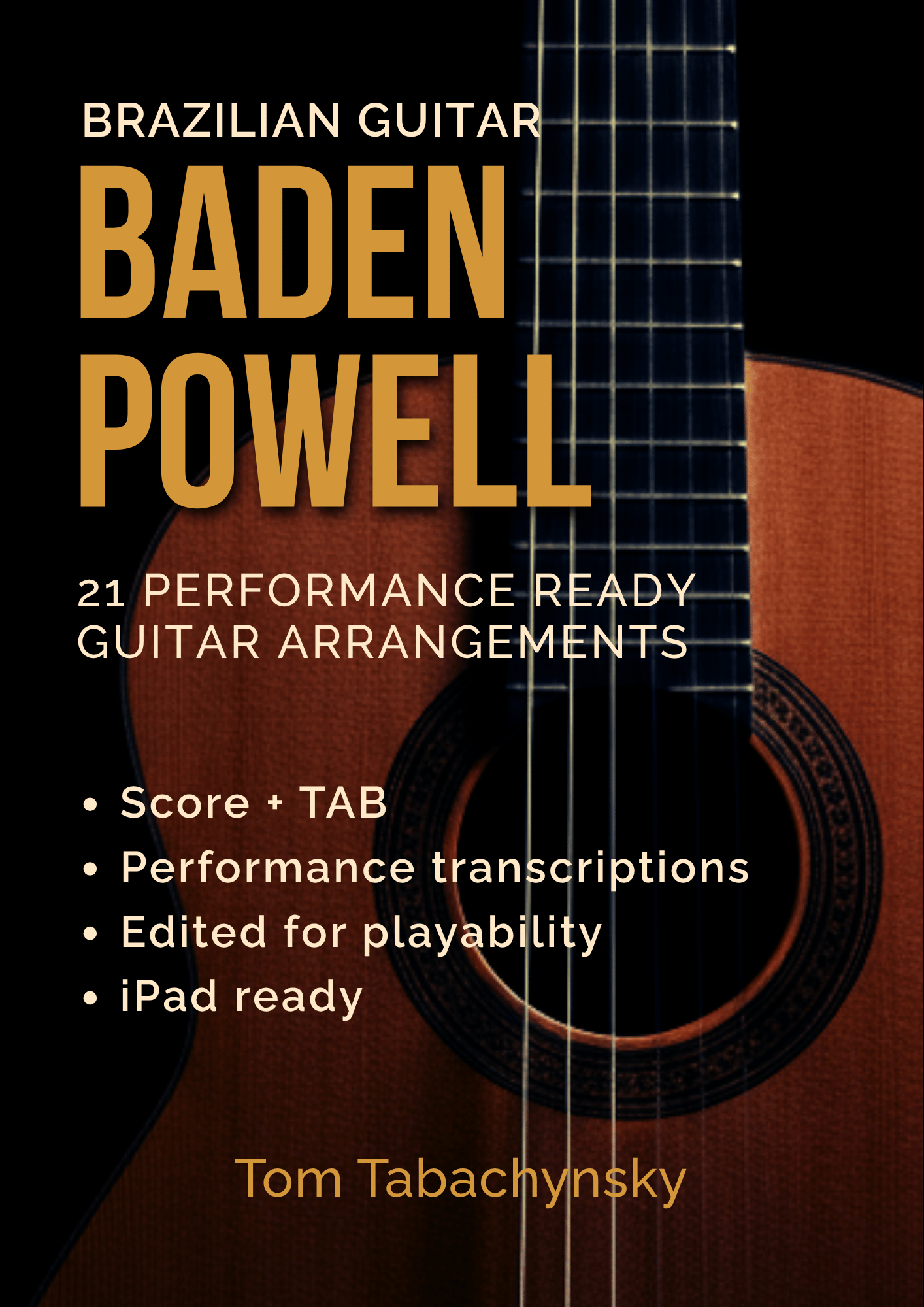 A curated collection of edited transcriptions from the recordings of Baden Powell, compiled by Tom Tabachynsky. These 21 pieces span Baden Powell's introspective, harmonically rich solo guitar repertoire — from original compositions like Apelo, Sentimentos, and Retrato Brasileiro to his arrangements of Jobim, Garoto, Bonfá, Monk and Gardel.
